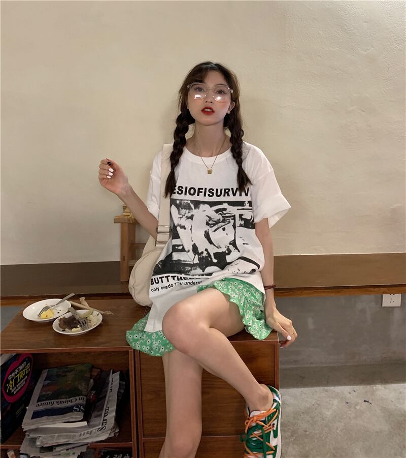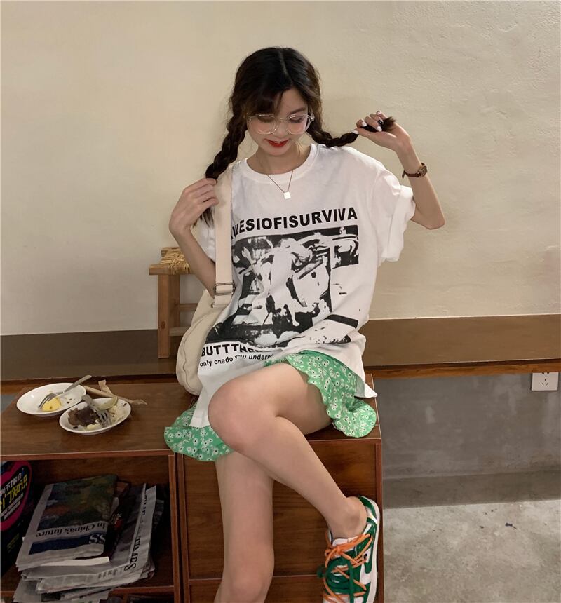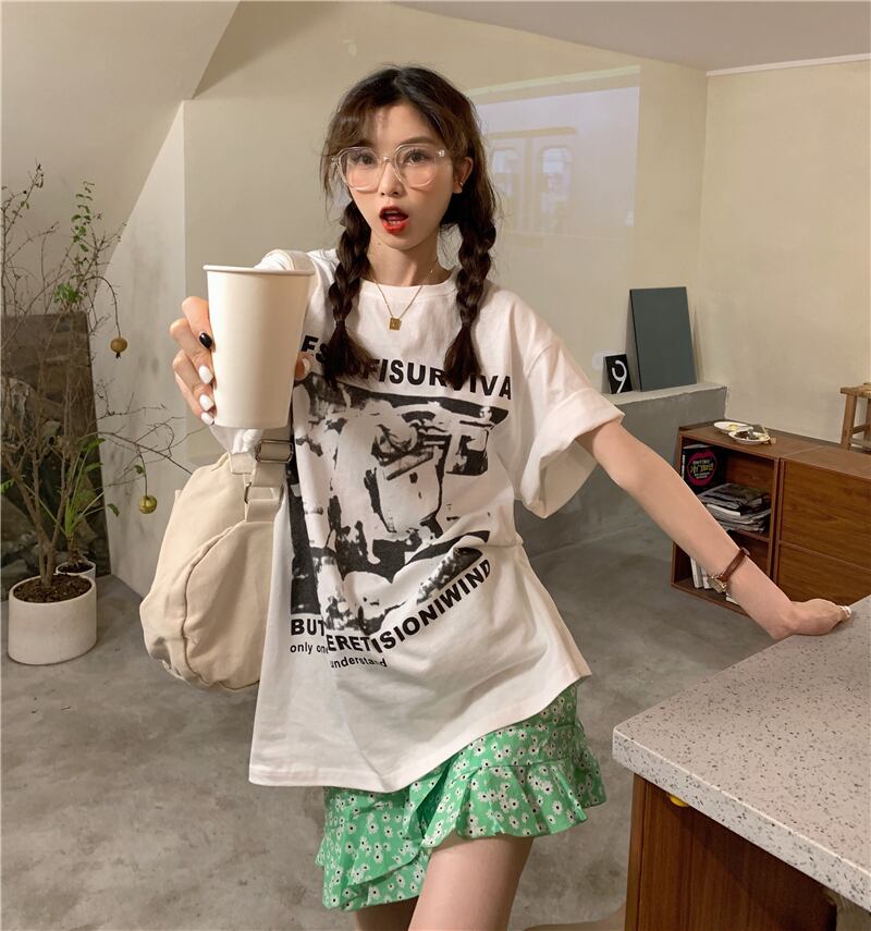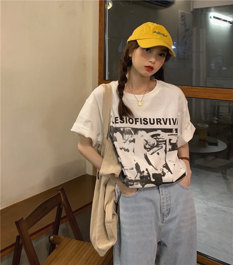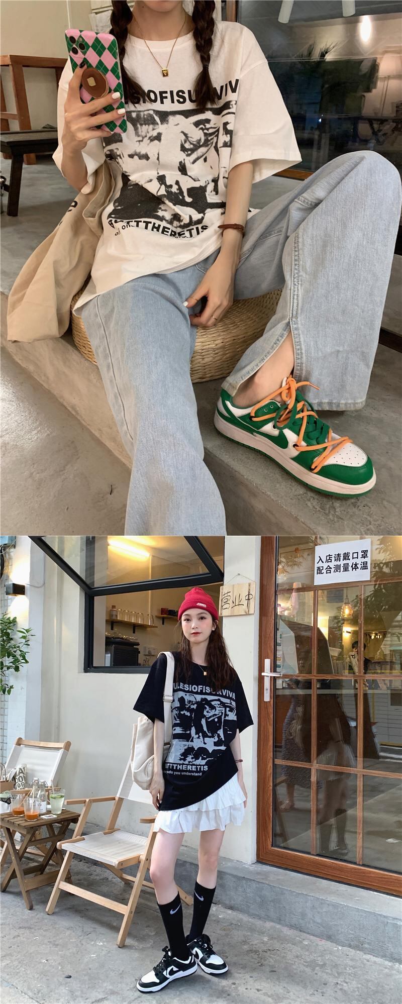 スタイルブラックプリントルーズTシャツ サマー 夏物 モンロー8015366165