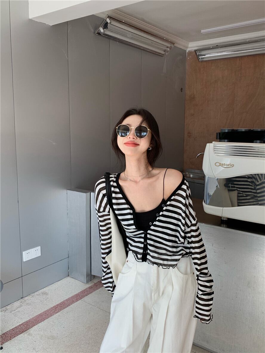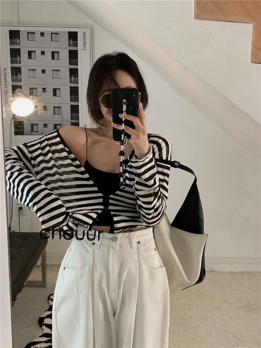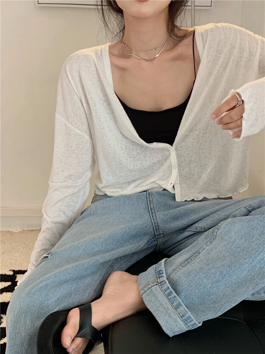 薄手ジャケット Vネックニットカーディガントップス サマールーズ ロング 夏物 モンロー32218129285