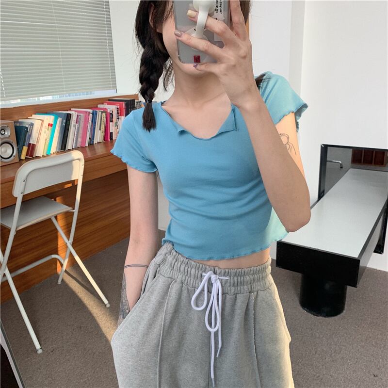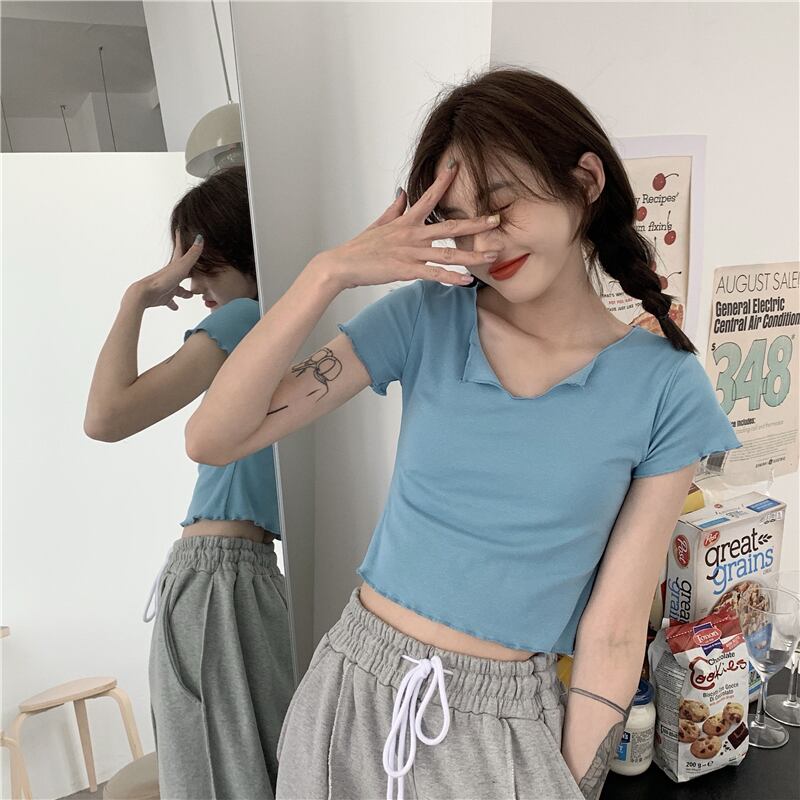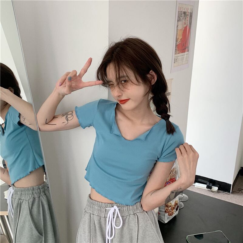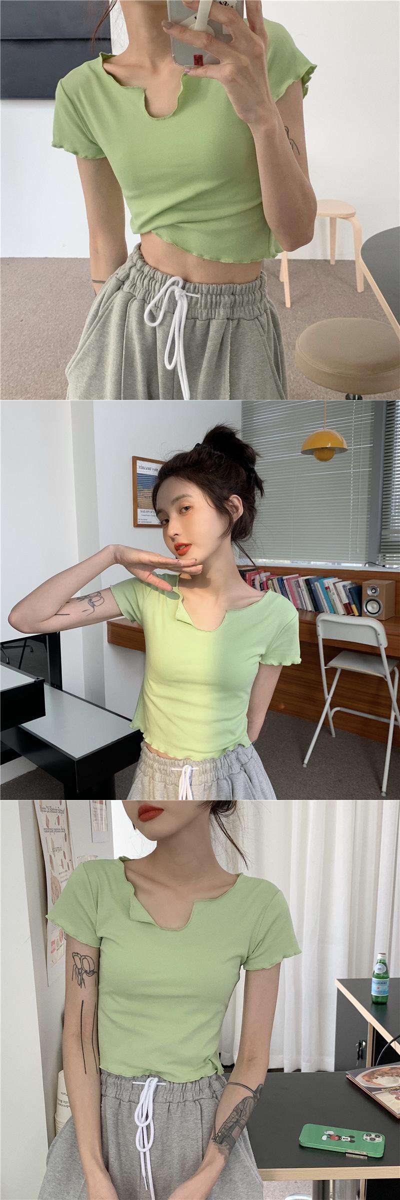 グリーンTシャツ Vネックショートサマートップス ドレス 夏物 モンロー41156870154
