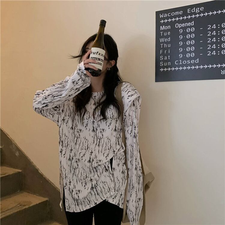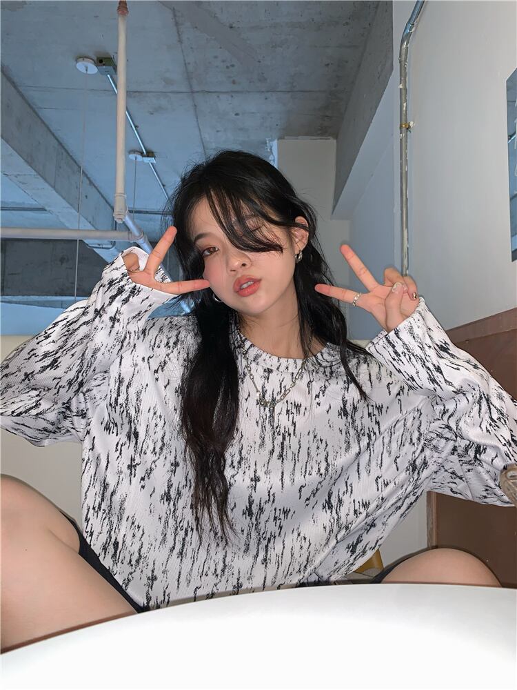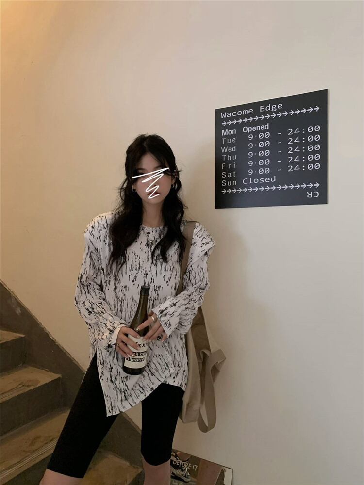 スタンダードルーズTシャツ シャツ 薄手サマー ロング レトロ 夏物 モンロー38856195707