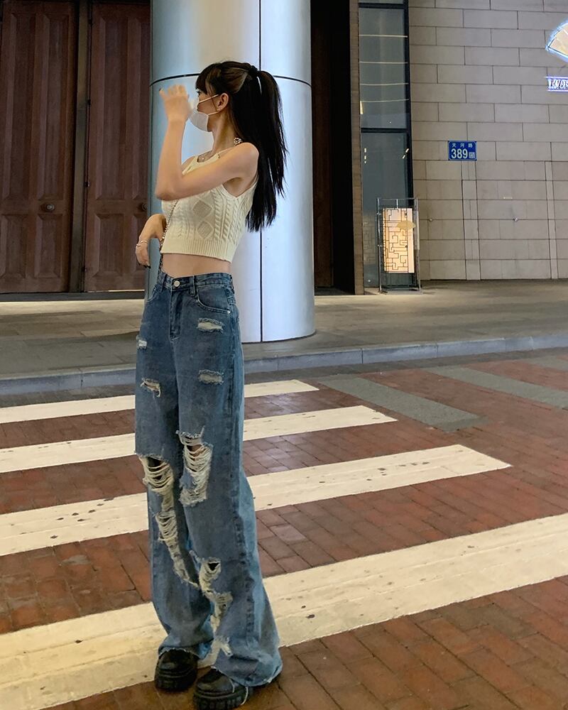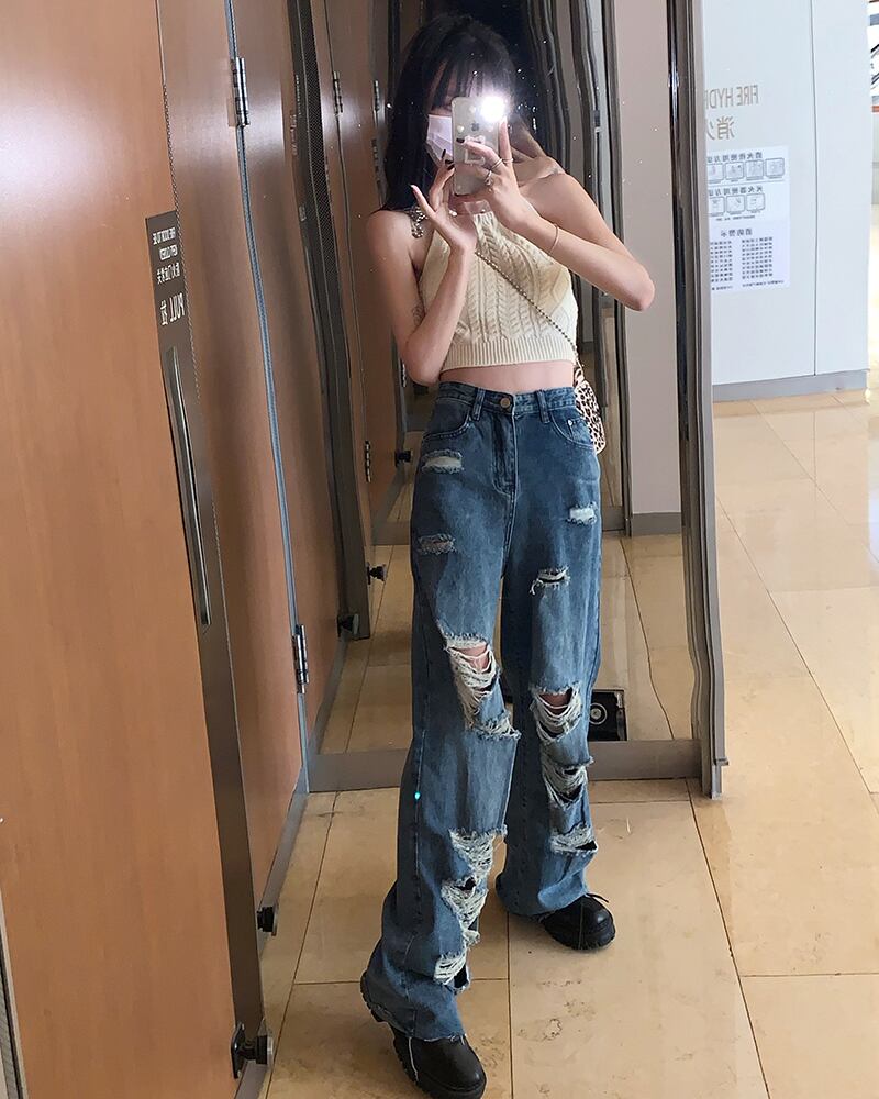 スタイルルーズジーンズ サマーハイウェスト薄手パンツ 夏物 モンロー34367401540