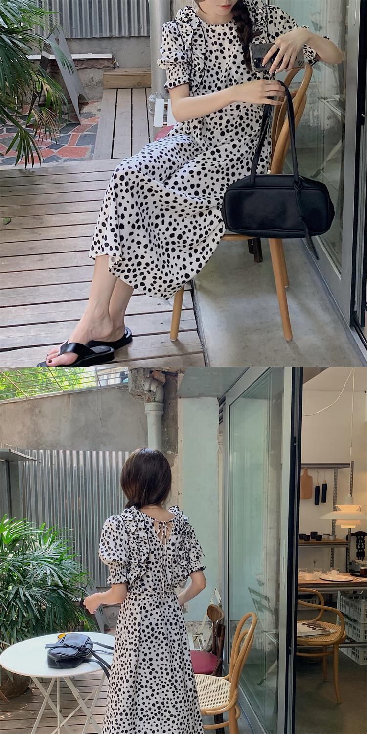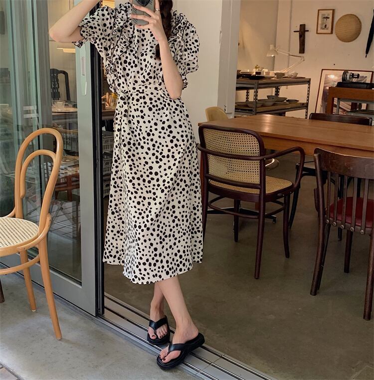 水玉シフォンドレス サマーウェストスリムスカート 夏物 モンロー56775039316