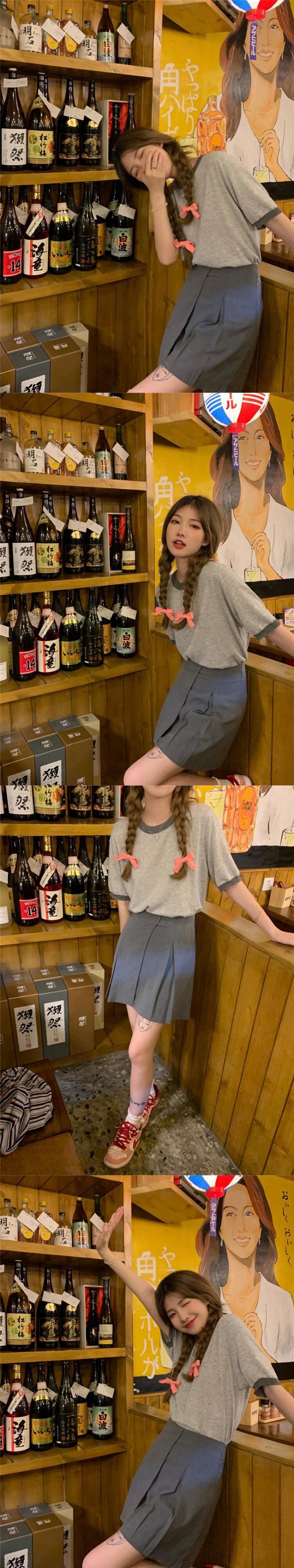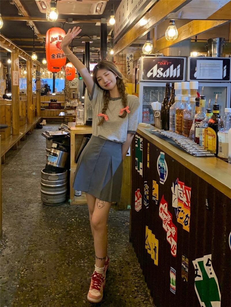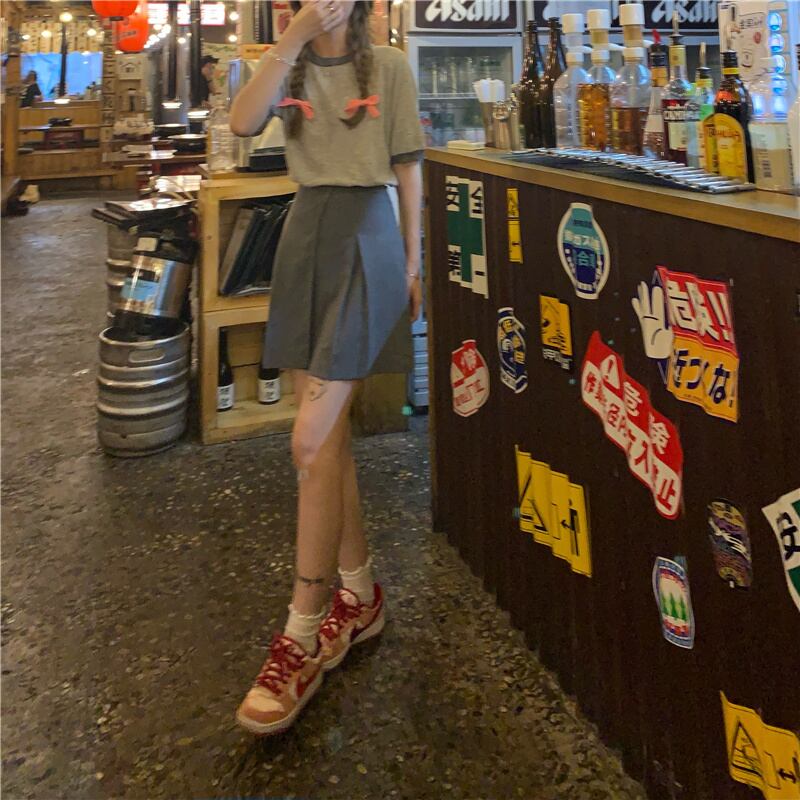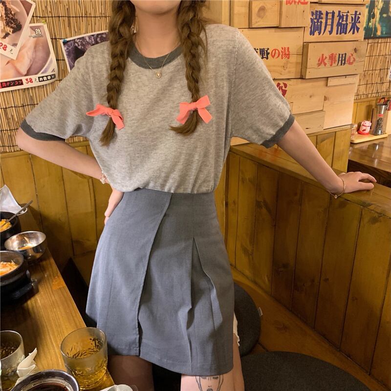 色:グレーのコントラストのラウンドネックニットトップ,グレーのハイウエストスカートS,グレーのハイウエストスカートM,グレーのハイウエストスカートL