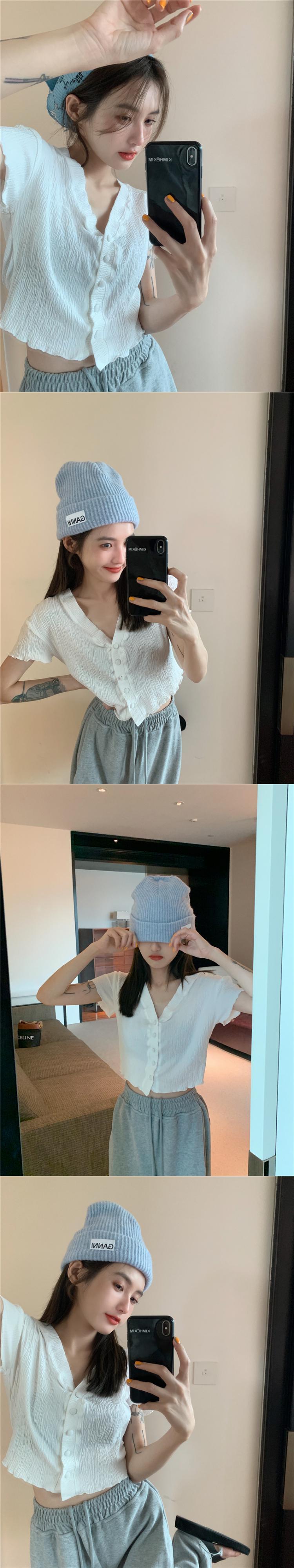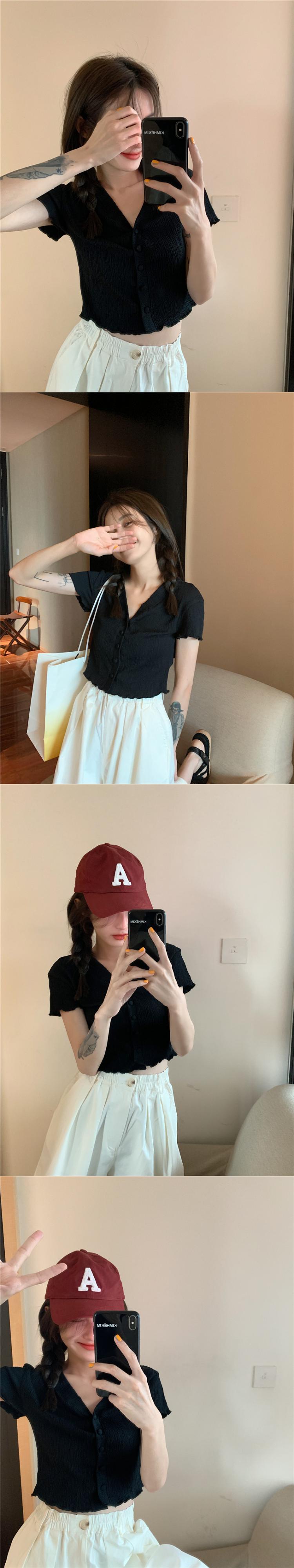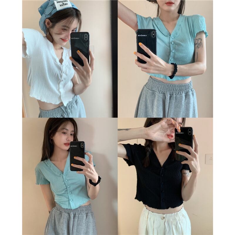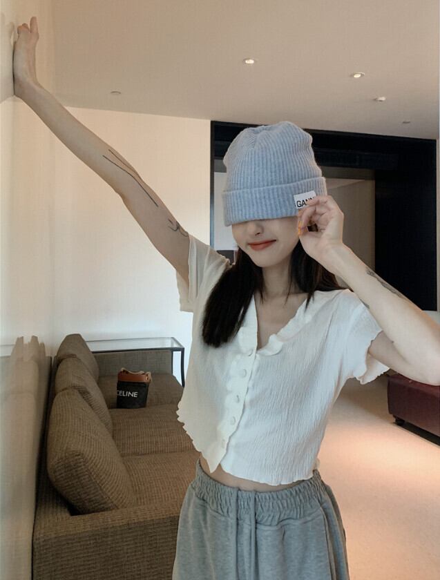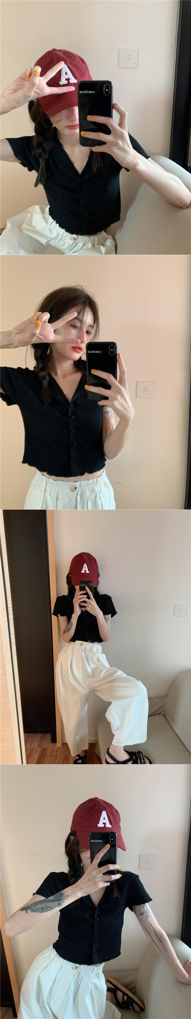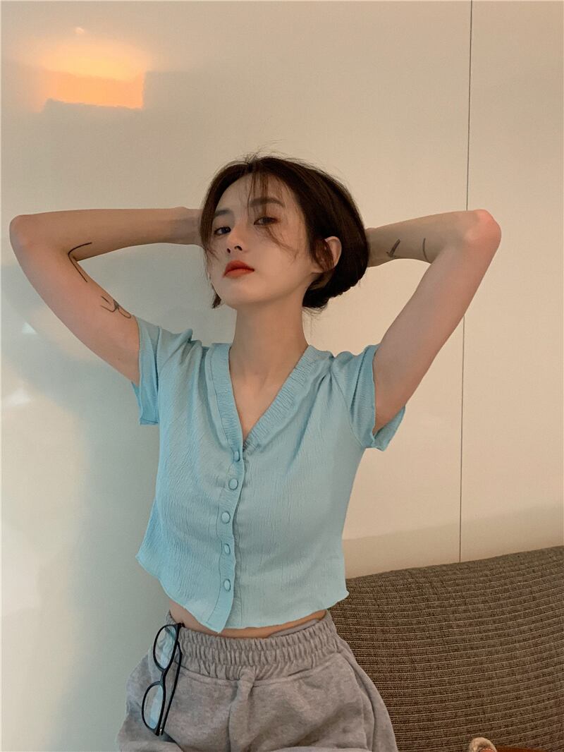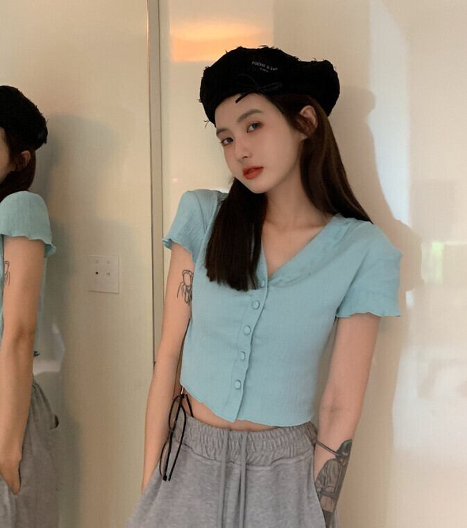 VネックスリムショートTシャツ 薄手サマートップス 大人ガーリー スウィート キュート カジュアル 夏物 モンロー15779512546