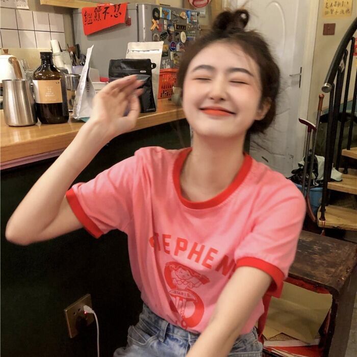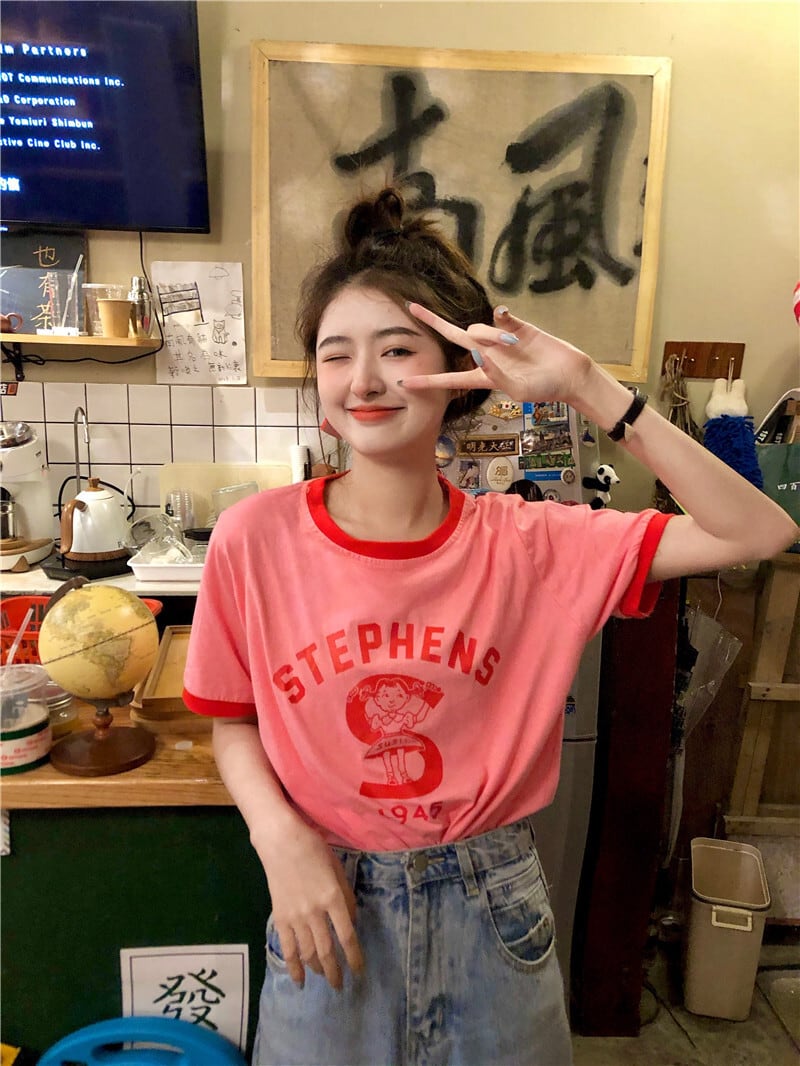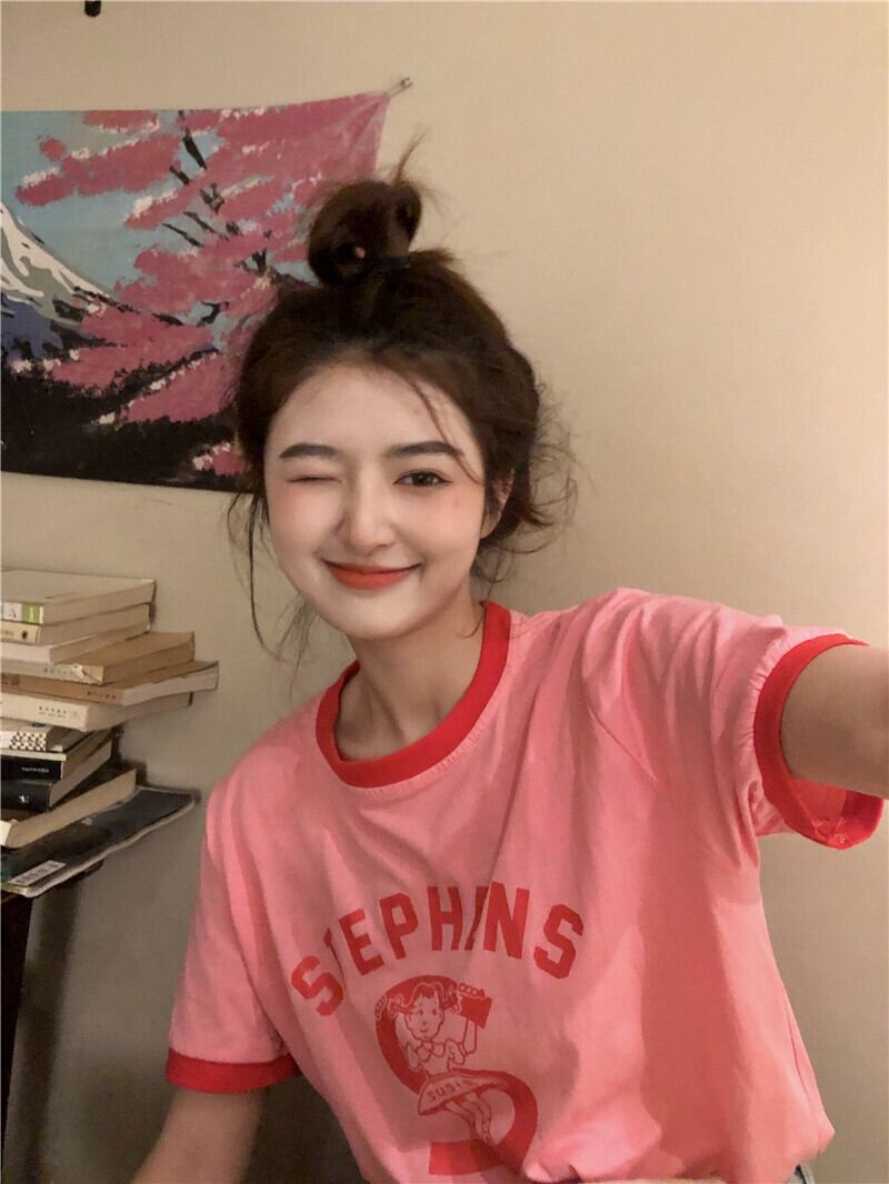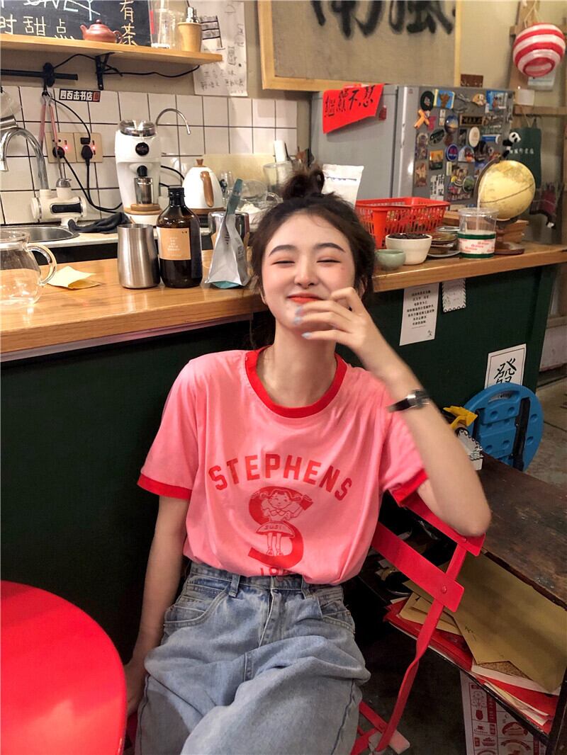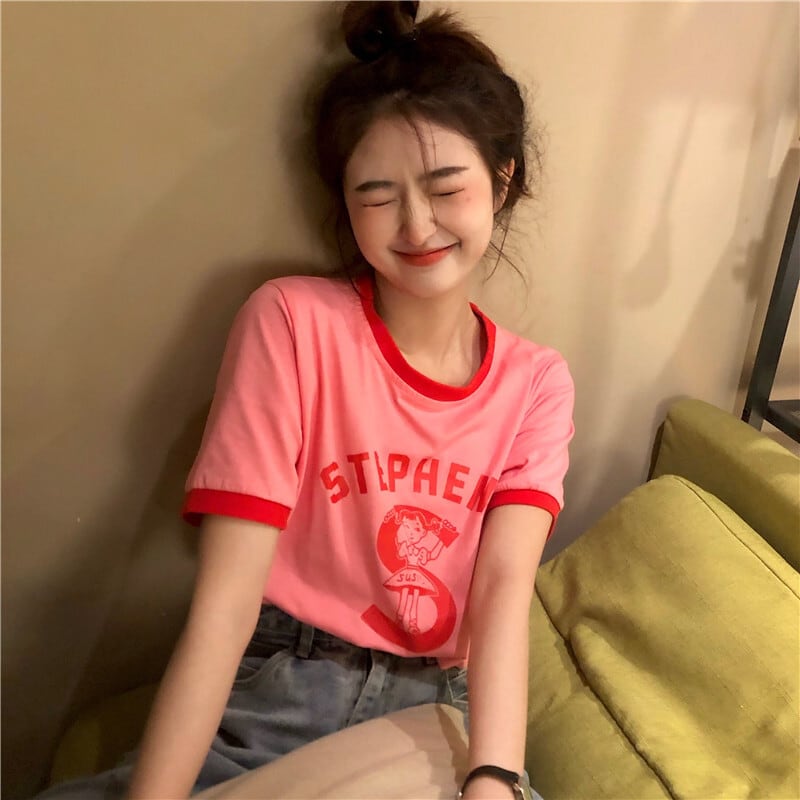 プリントTシャツ サマールーズトップス ピンク 夏物 モンロー35054771410