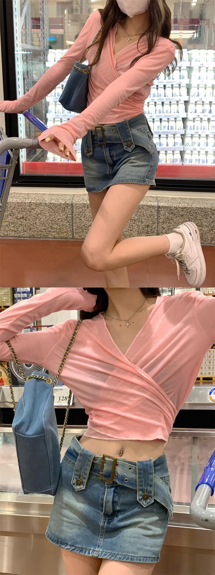 VネックTシャツ サマー薄手スリムトップス ロング ストリート 夏物 ピュア モンロー2499784880