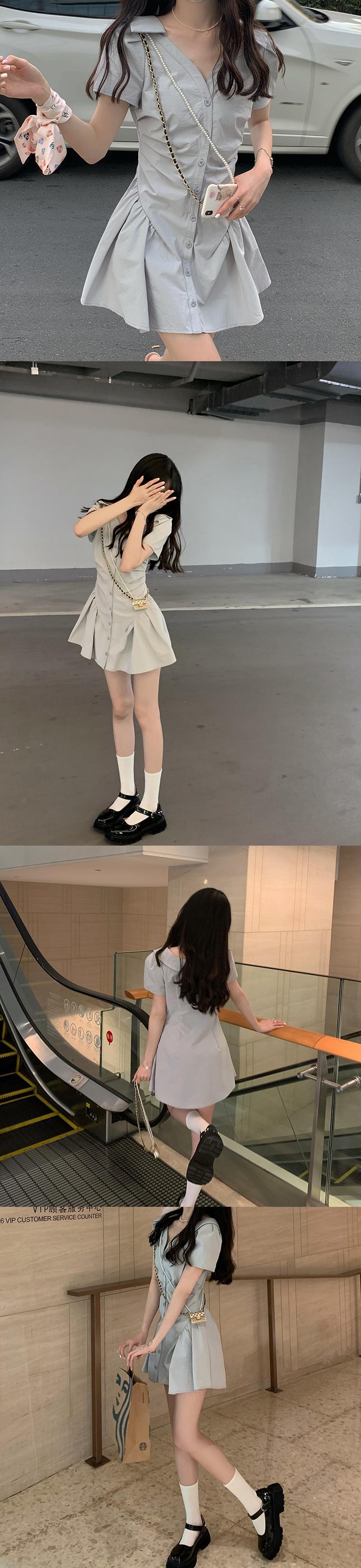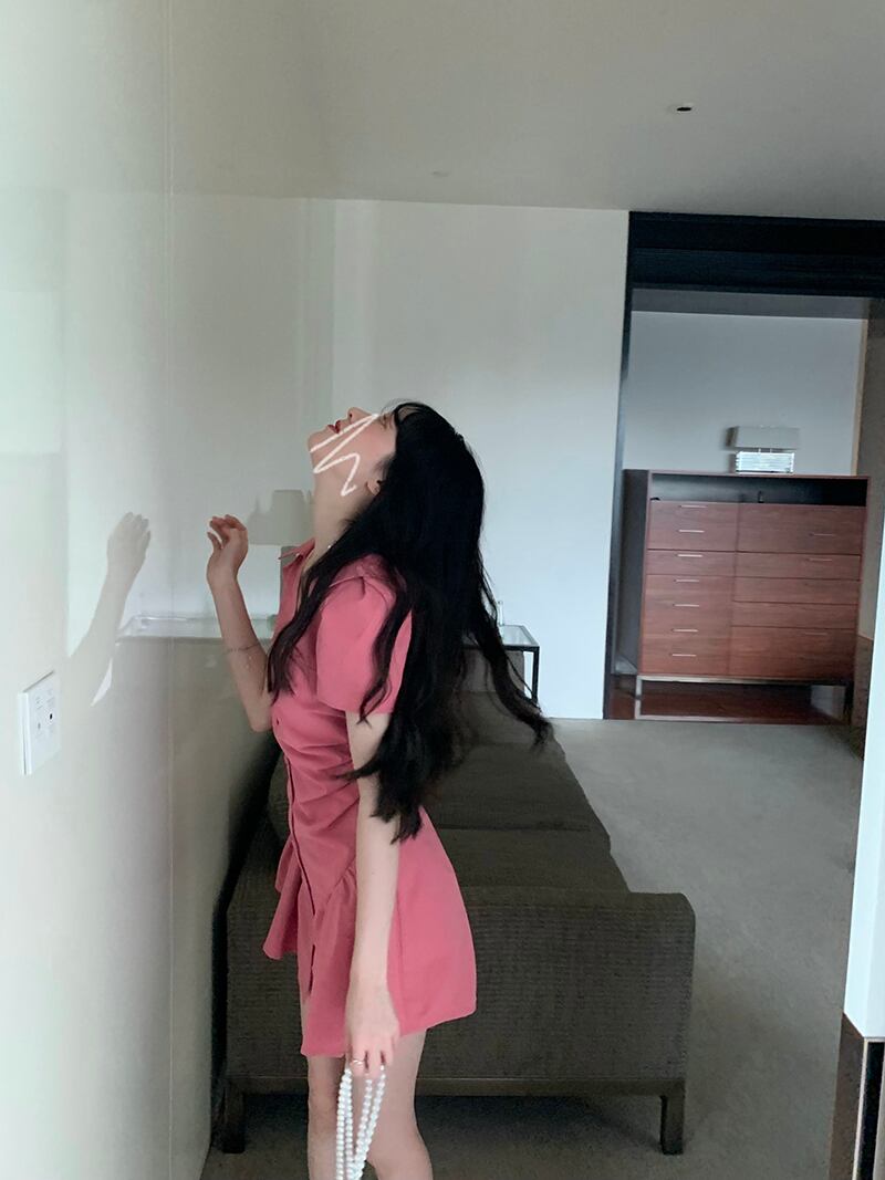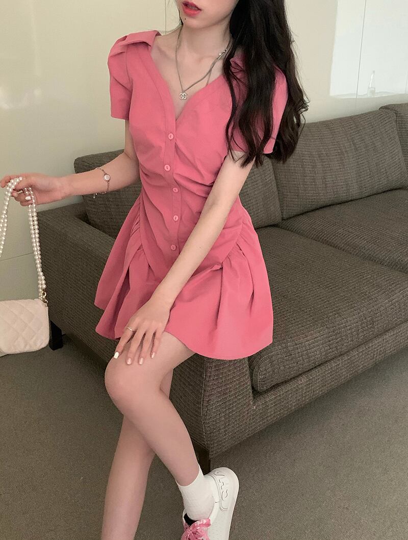 Vネックドレス サマーウェストAラインショートスカート ピンク 大人ガーリー スウィート キュート カジュアル 夏物 モンロー60354899195