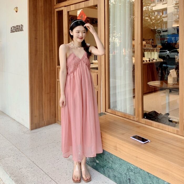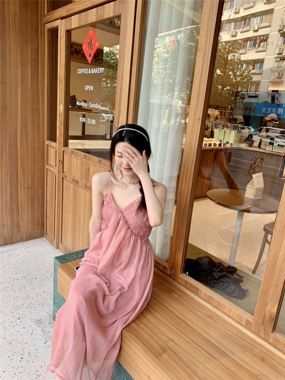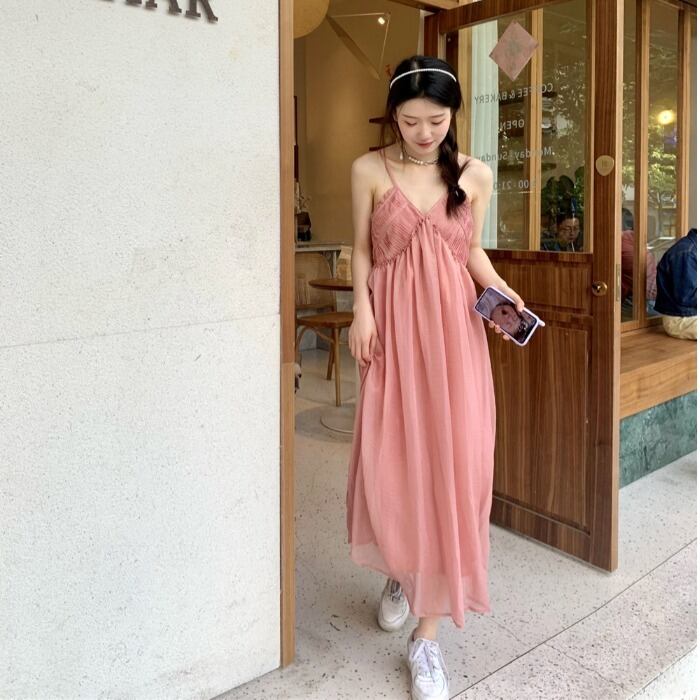 ドレス サマースタイル薄手ロングスカート Aライン ピンク 大人ガーリー スウィート キュート カジュアル 夏物 モンロー33395046380