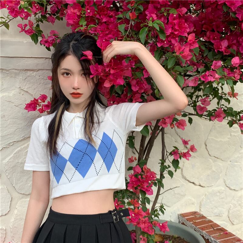 カラーショートブラックセーター レディースサマー薄手スリムトップス 大人ガーリー スウィート キュート カジュアル 夏物 モンロー42542370874