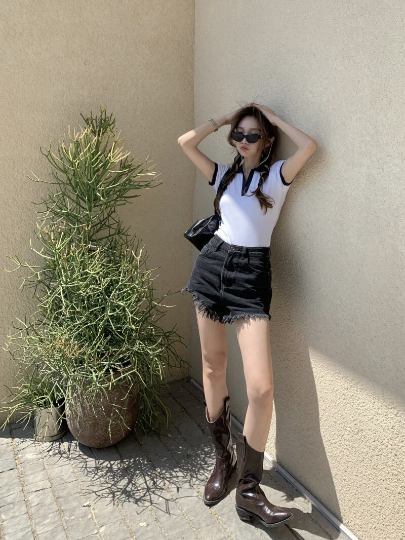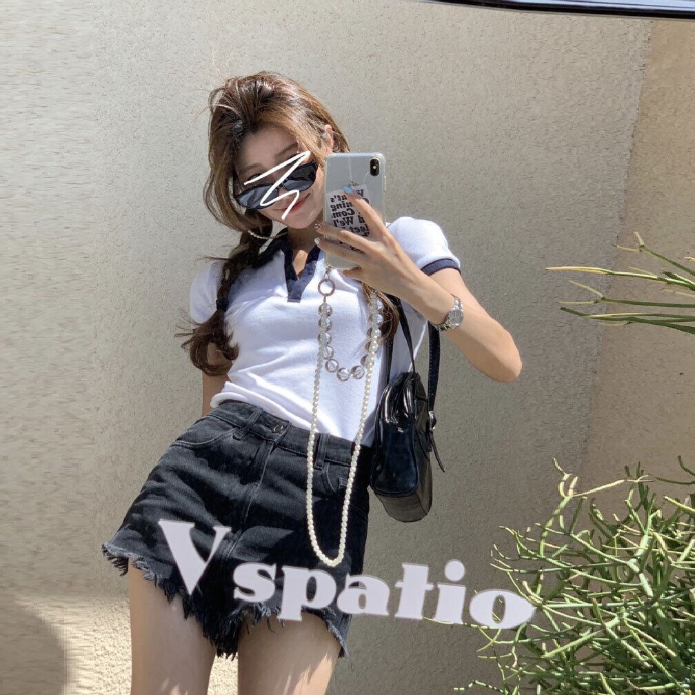 カラーショートTシャツ サマートップス 夏物 モンロー7889343706
