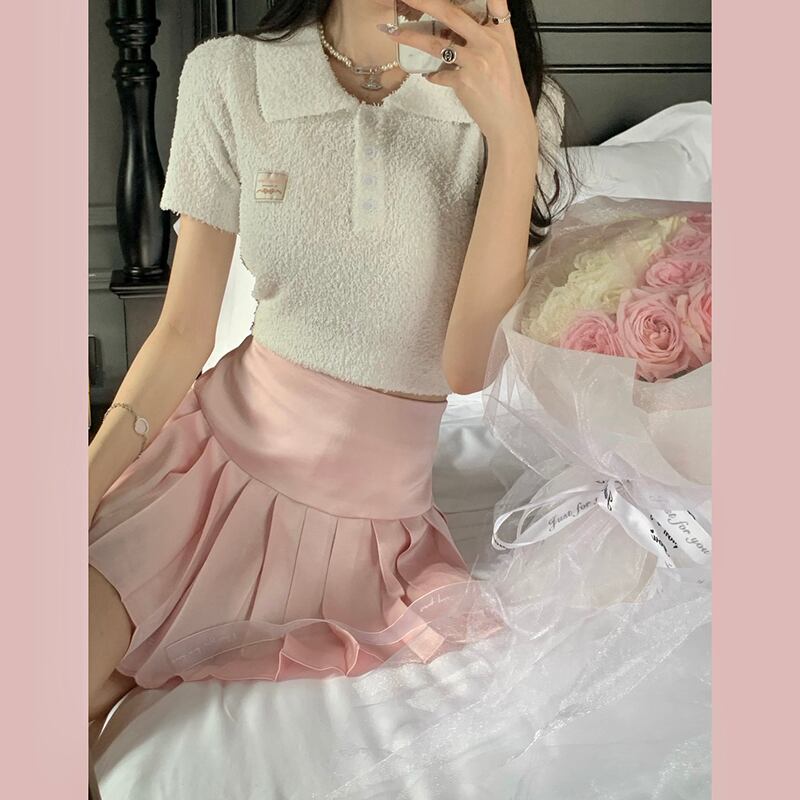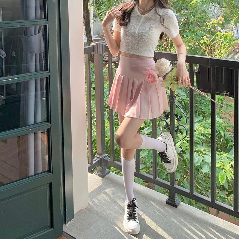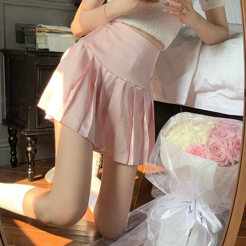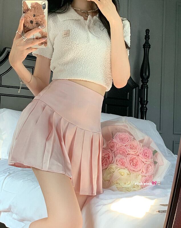 ハイウェストウェストスリムショートスカート サマーAラインプリーツ ピンク 大人ガーリー スウィート キュート カジュアル 夏物 モンロー56599970516