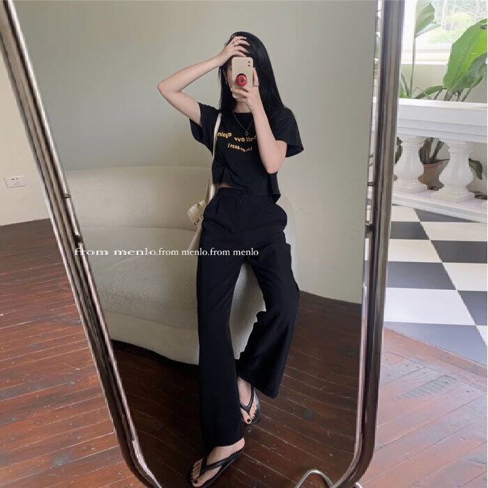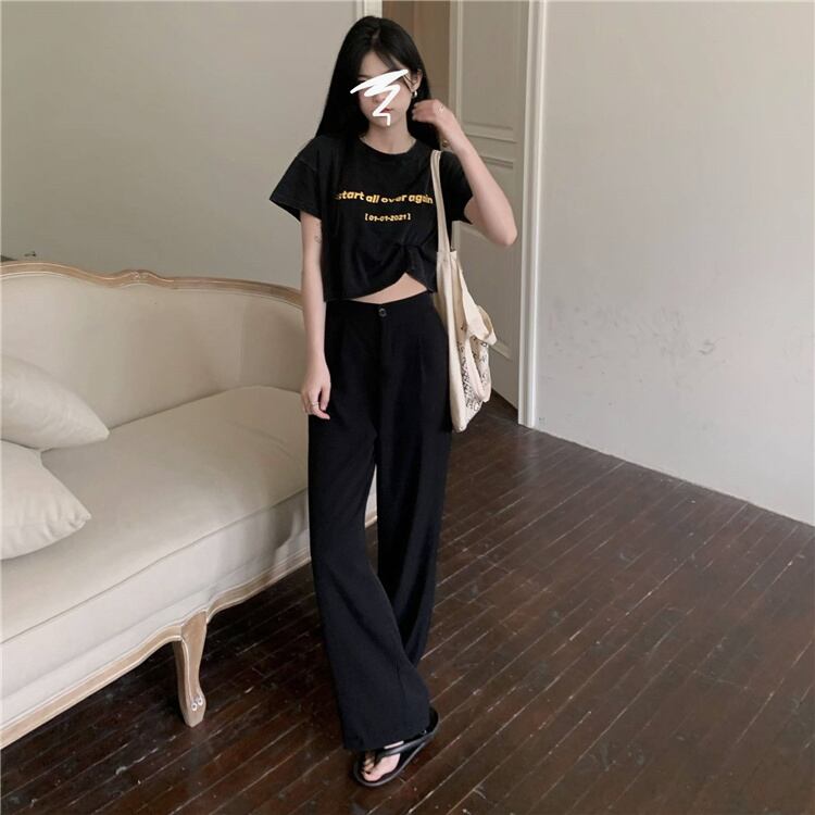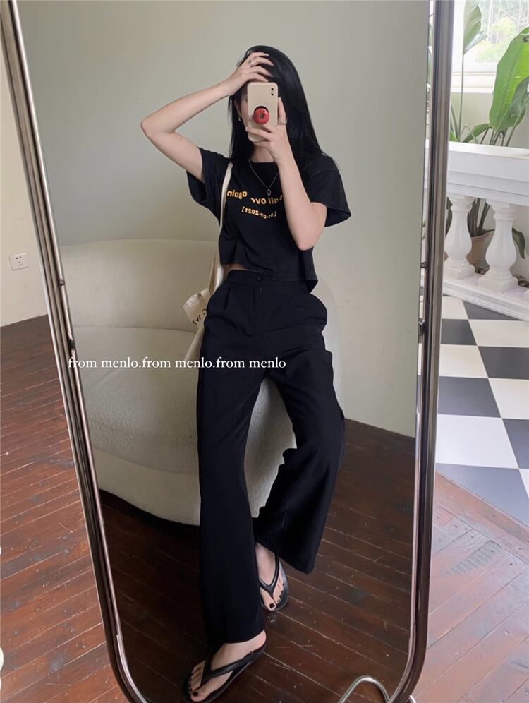 ブラックカジュアルパンツ サマー薄手ハイウェストウェストルーズ 夏物 モンロー30381744369