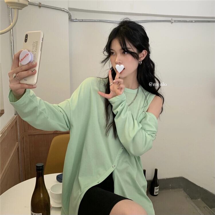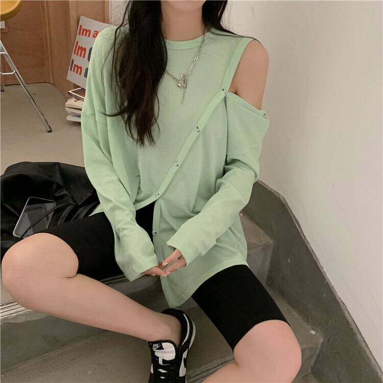グリーンストラップレスTシャツ 薄手サマー ロング 夏物 モンロー49751510514