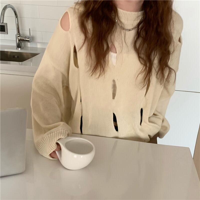 スタイルルーズニットセーター サマーベーシック薄手トップス ロング 夏物 モンロー32463313605