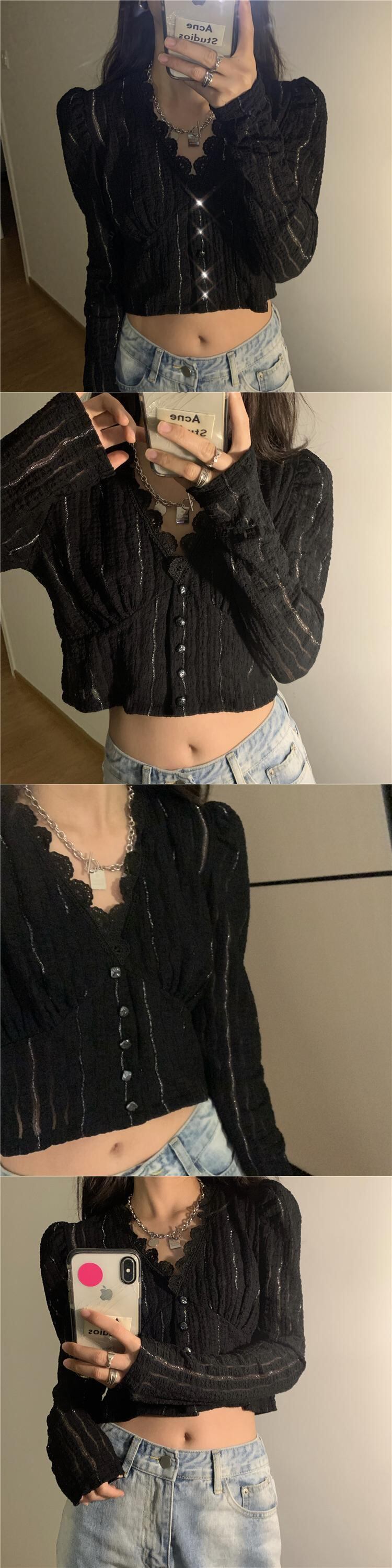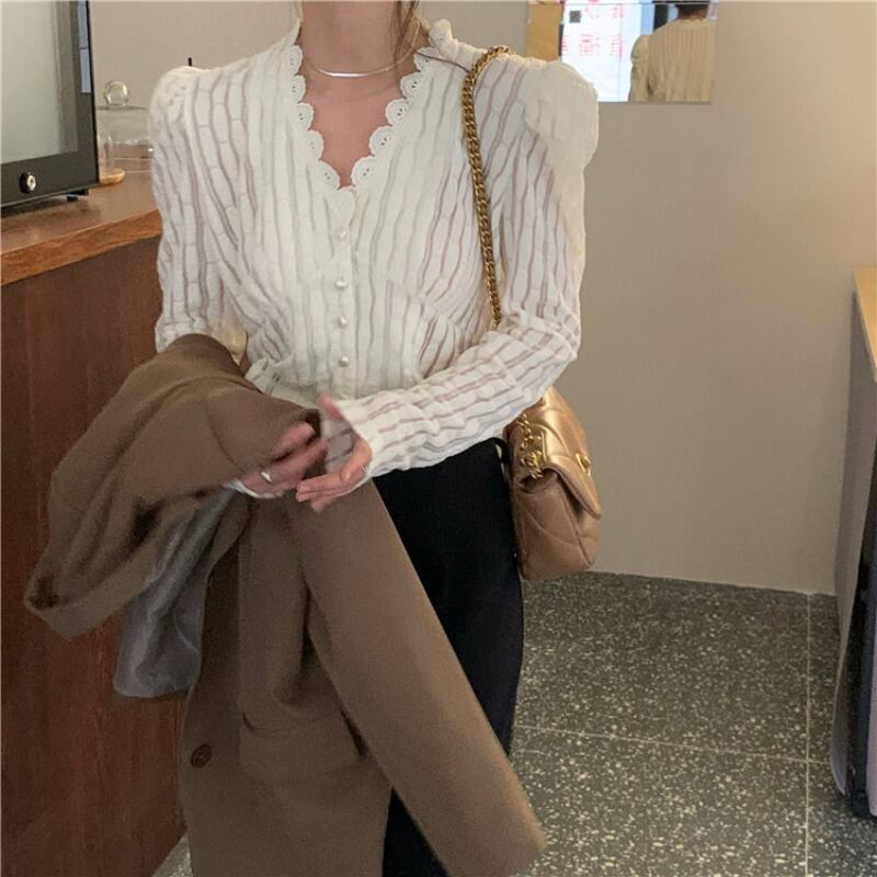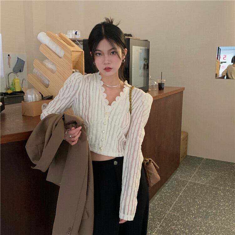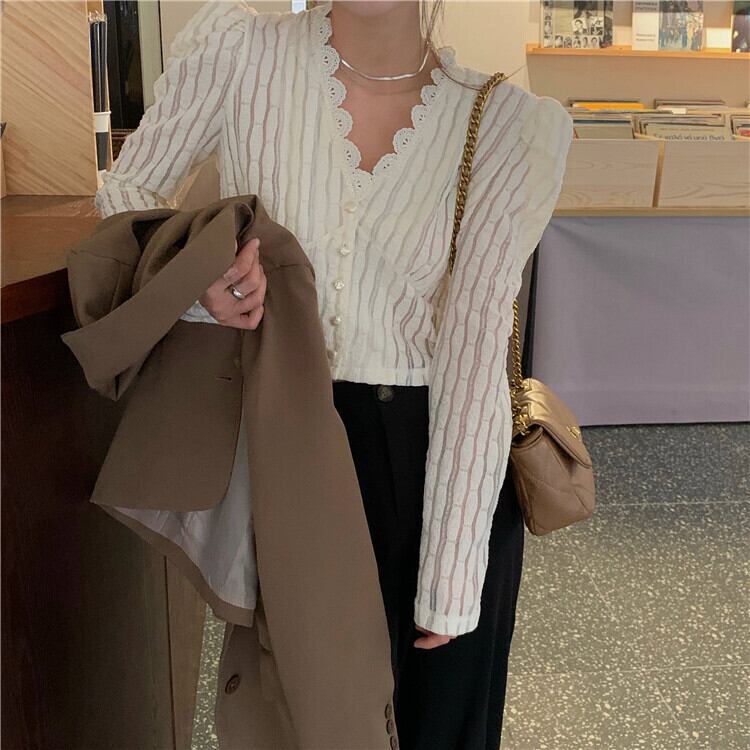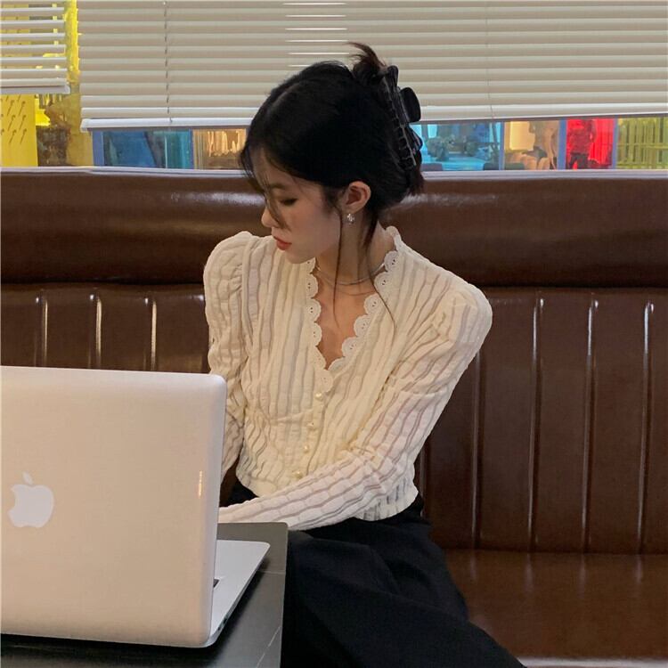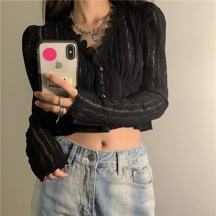 薄手Vネックレースシャツ サマーショートスリムトップス ロング 夏物 モンロー93854683556