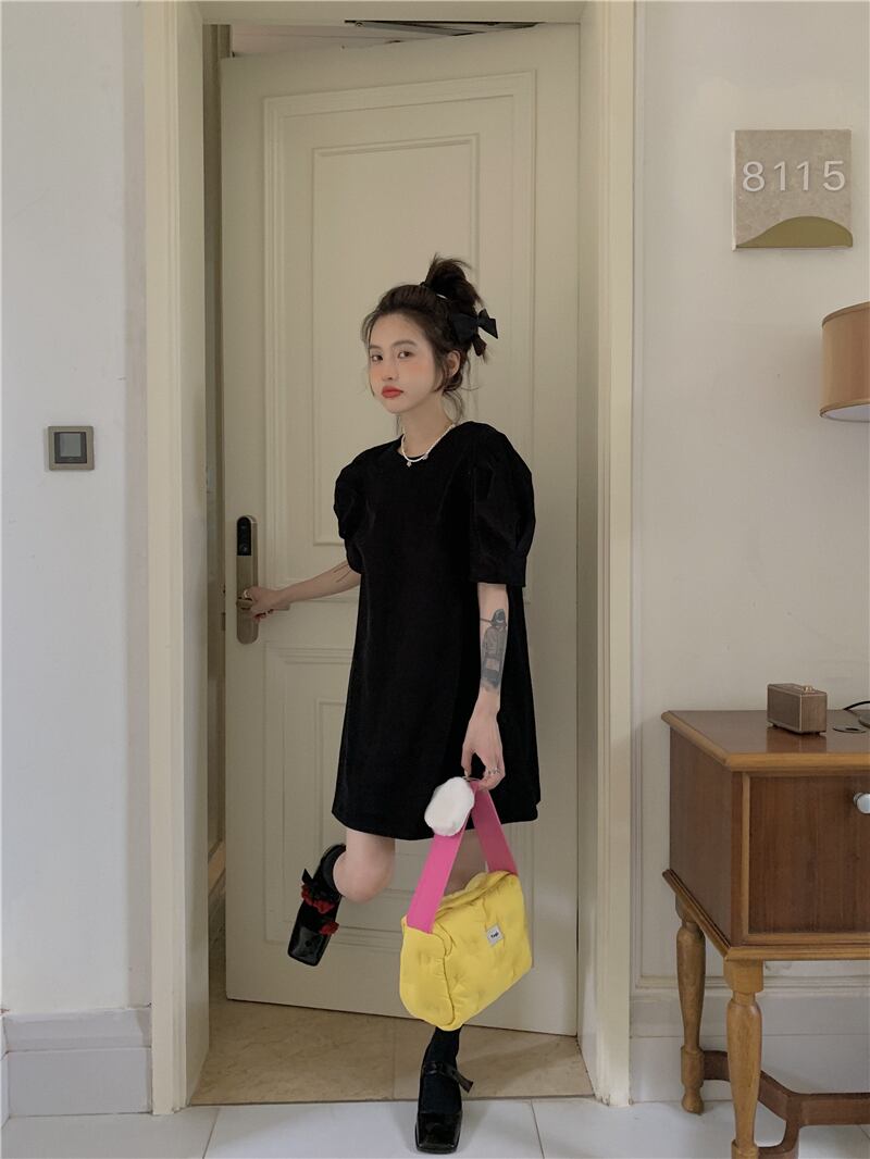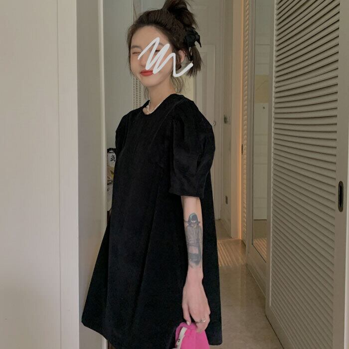 ブラックドレス ショートスカート Aラインサマースタンダード レトロ 夏物 モンロー8913904266