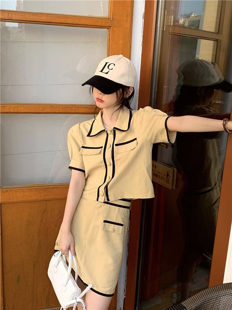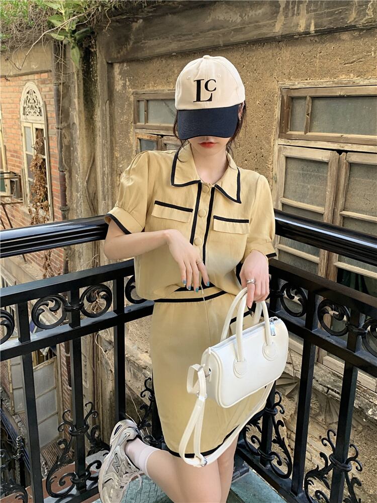 色:黄色いシャツ3944#,黒のシャツ3944#,黄色のハーフスカート3945#,黒のスカート3945#