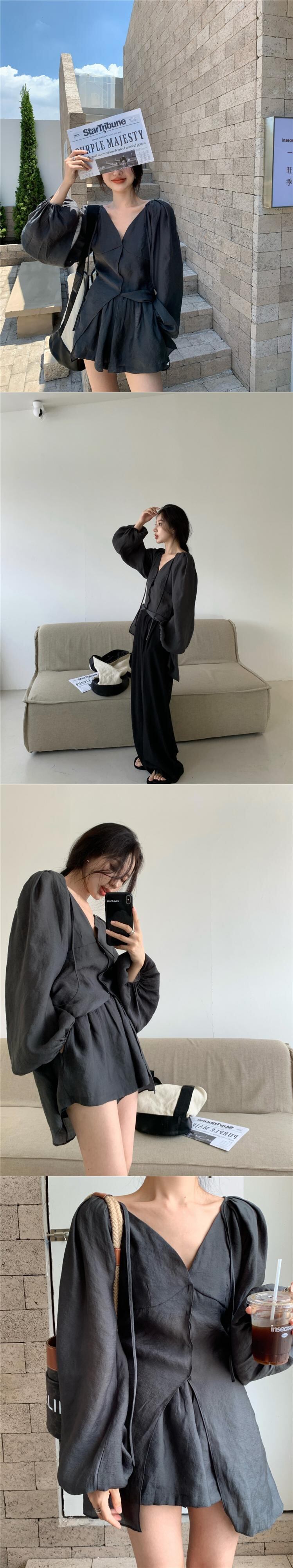 色:パープルトップ,パープルショーツ,グレートップ,グレーのショートパンツ