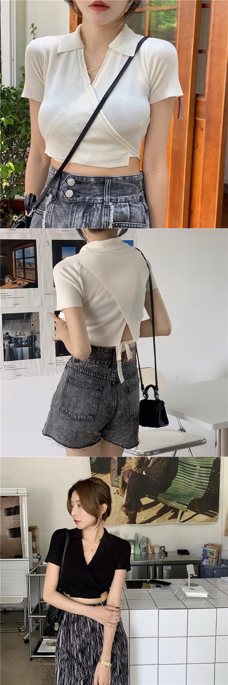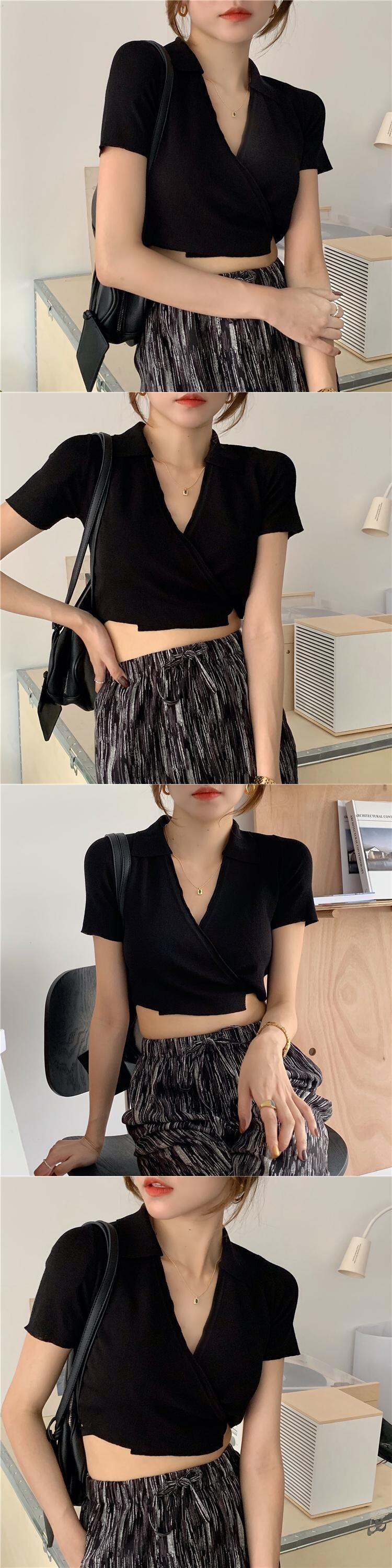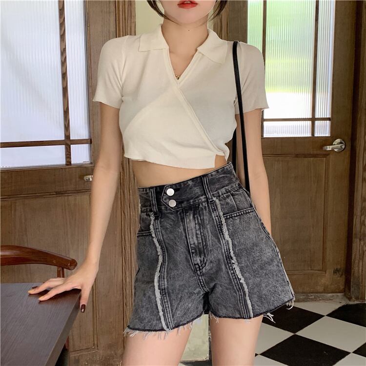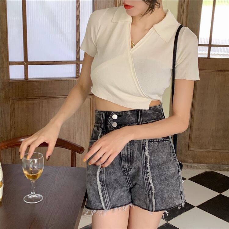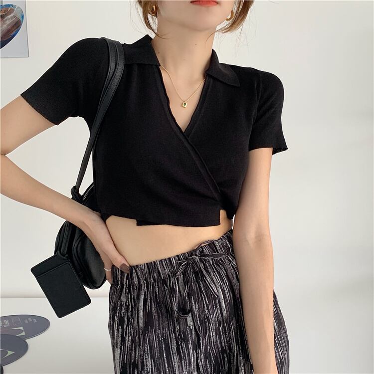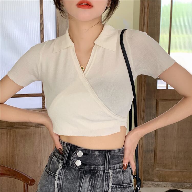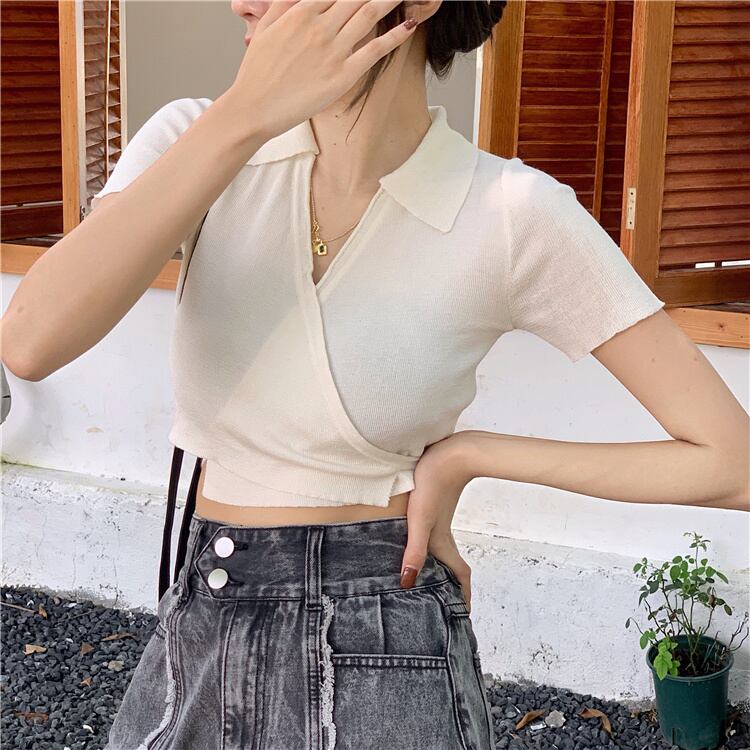 ホワイトショートVネックセーター コート サマースタイルブラウス 夏物 モンロー15252283752