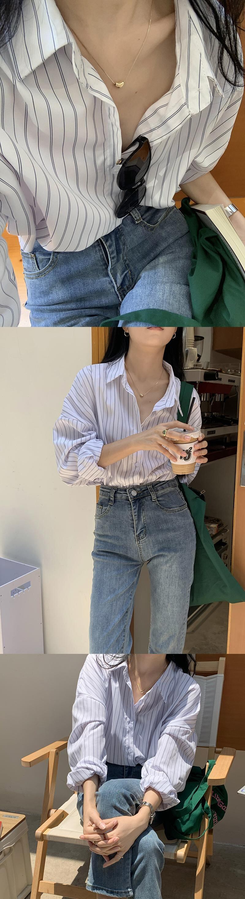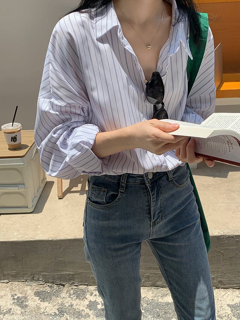 スタイルストライプシャツ オータム薄手ジャケット サマールーズトップス ロング 夏物 秋物 モンロー78796811790