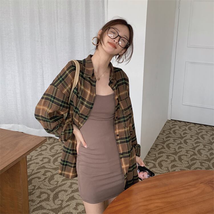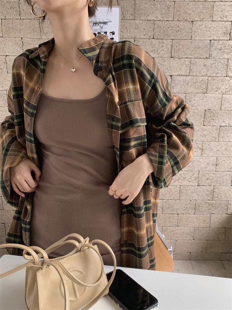 スタンダード格子柄シャツ オータム薄手ジャケット サマー ロング レトロ 夏物 秋物 モンロー28933961527