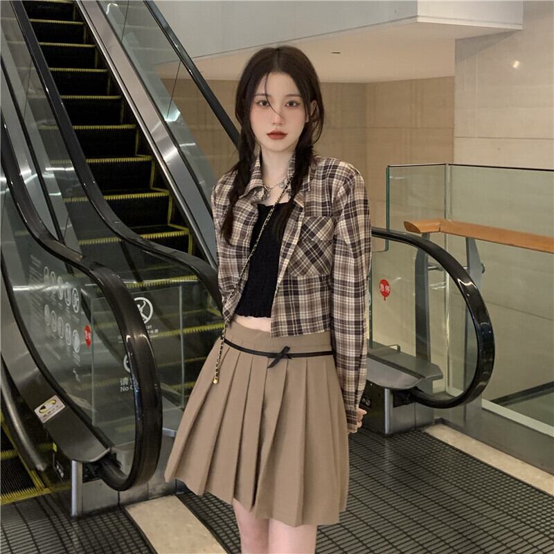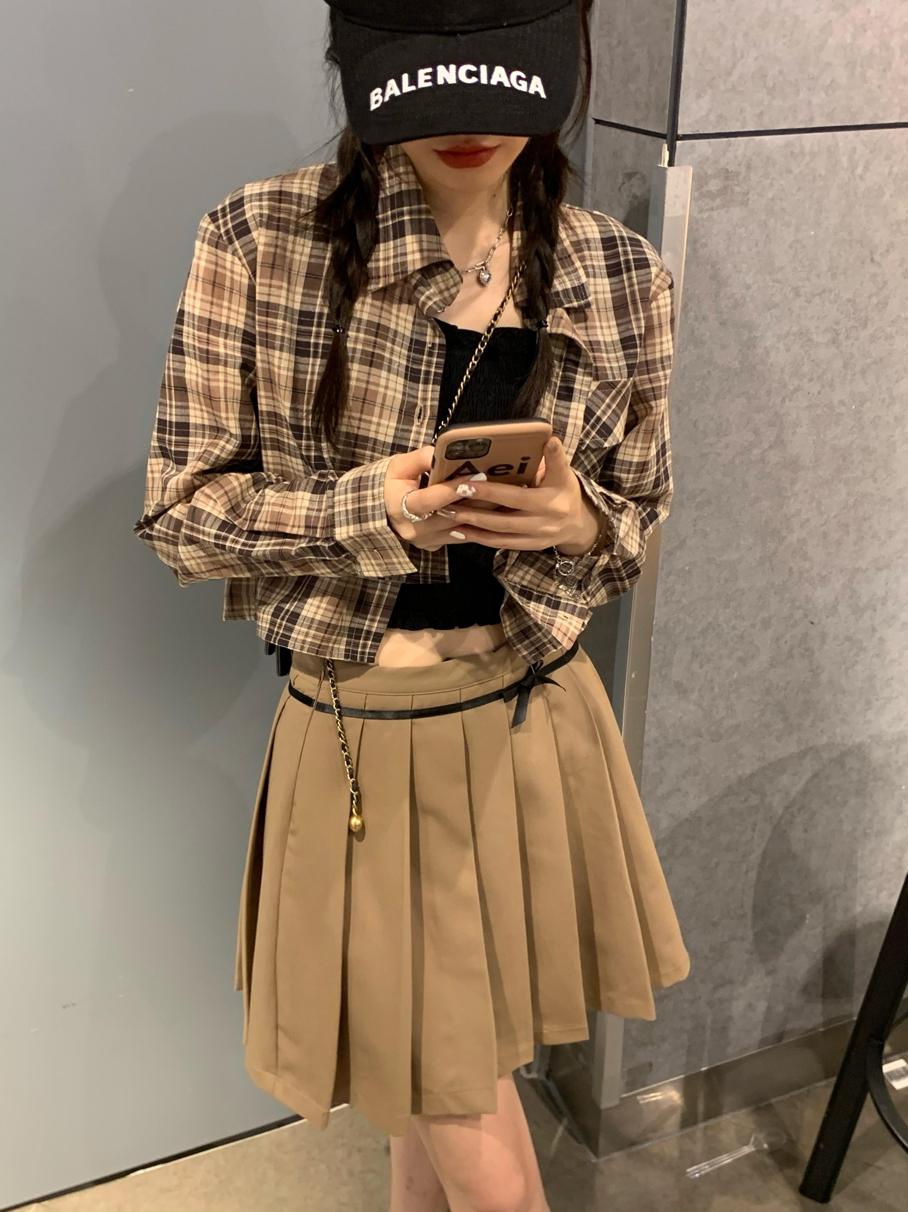 色:中のベスト,格子縞のシャツ,プリーツスカート