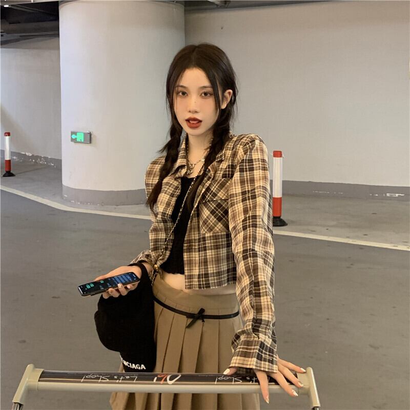 レッドオータム格子柄シャツ スカート 秋物 モンロー25055033999