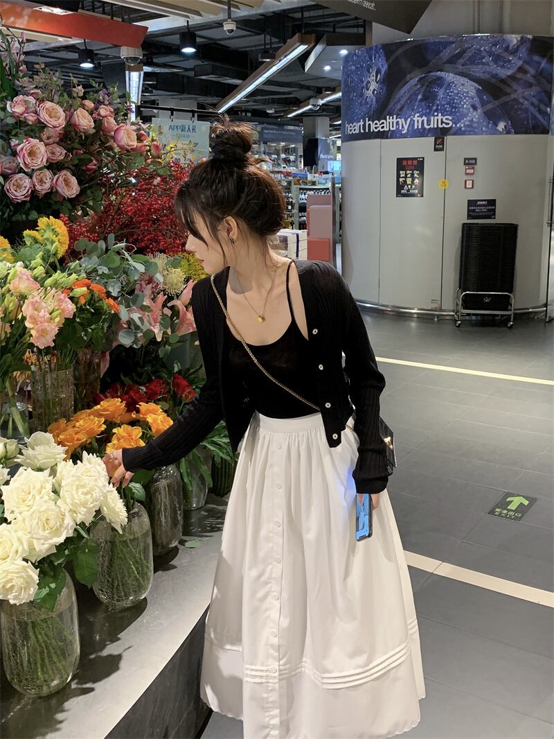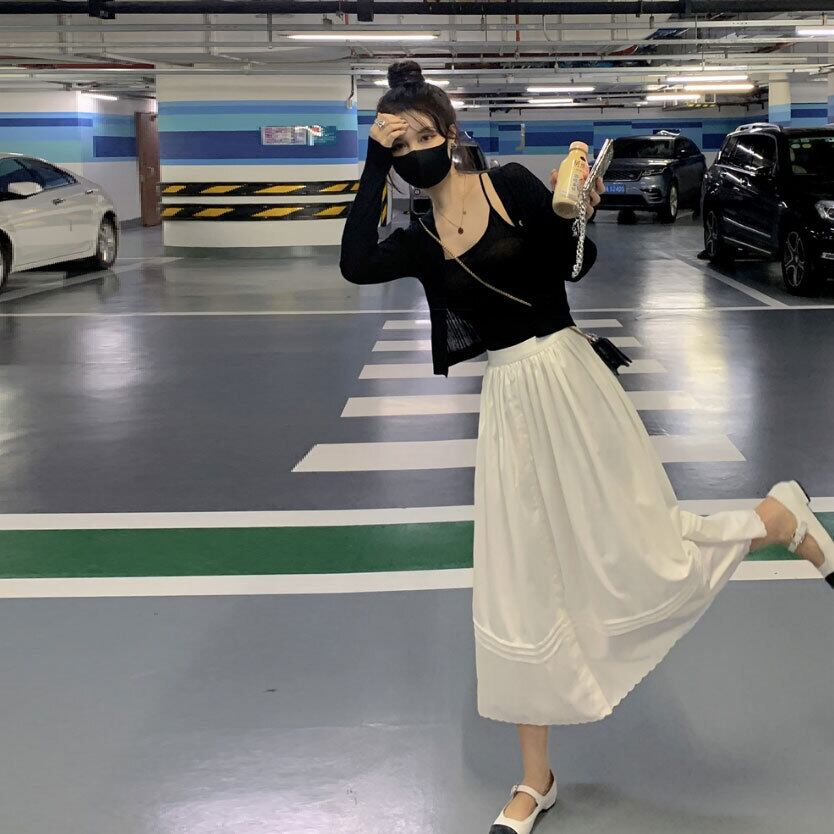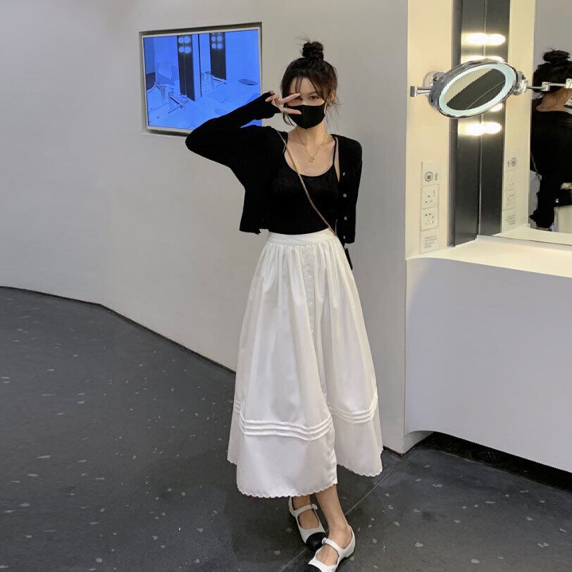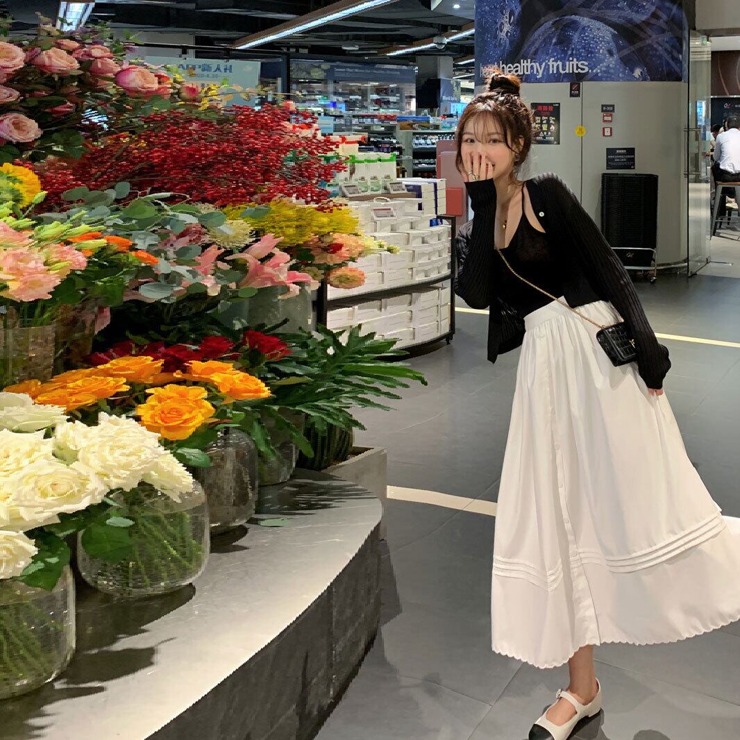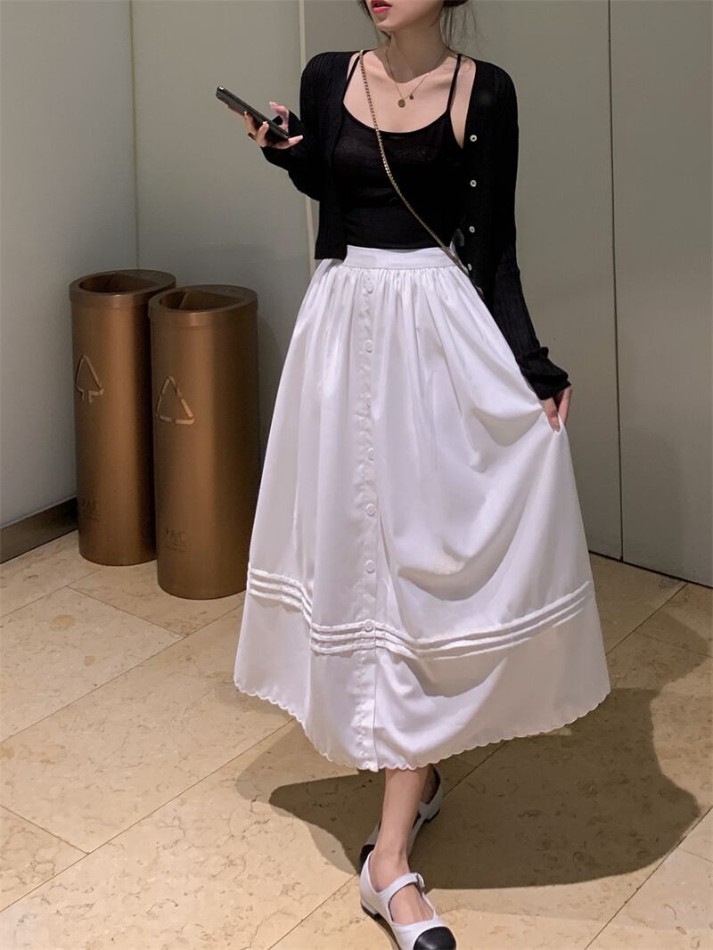 ウェストスリム薄手スカート サマースタイルホワイトAラインロング 大人ガーリー スウィート キュート カジュアル 夏物 モンロー14464506375