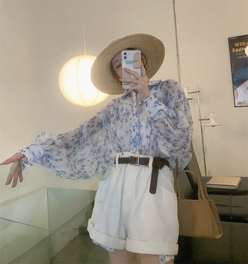 スタイルルーズフローラルシャツ サマー薄手レディース ロング 夏物 花柄 モンロー83506648682