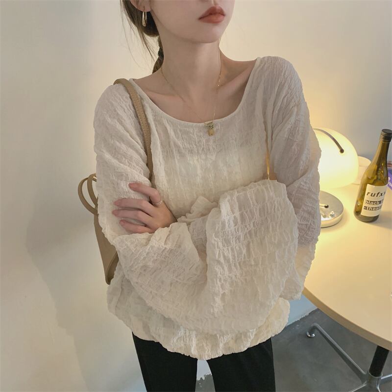 プリーツシャツ 薄手サマールーズ ロング 夏物 モンロー15929001735