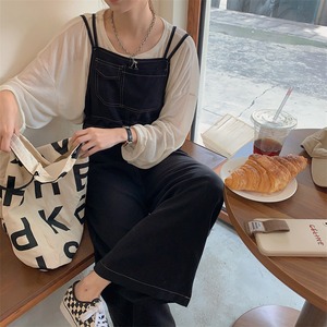 スタンダードサマーTシャツ ウェストワンピースパンツ ロング レトロ 夏物 モンロー45147022415