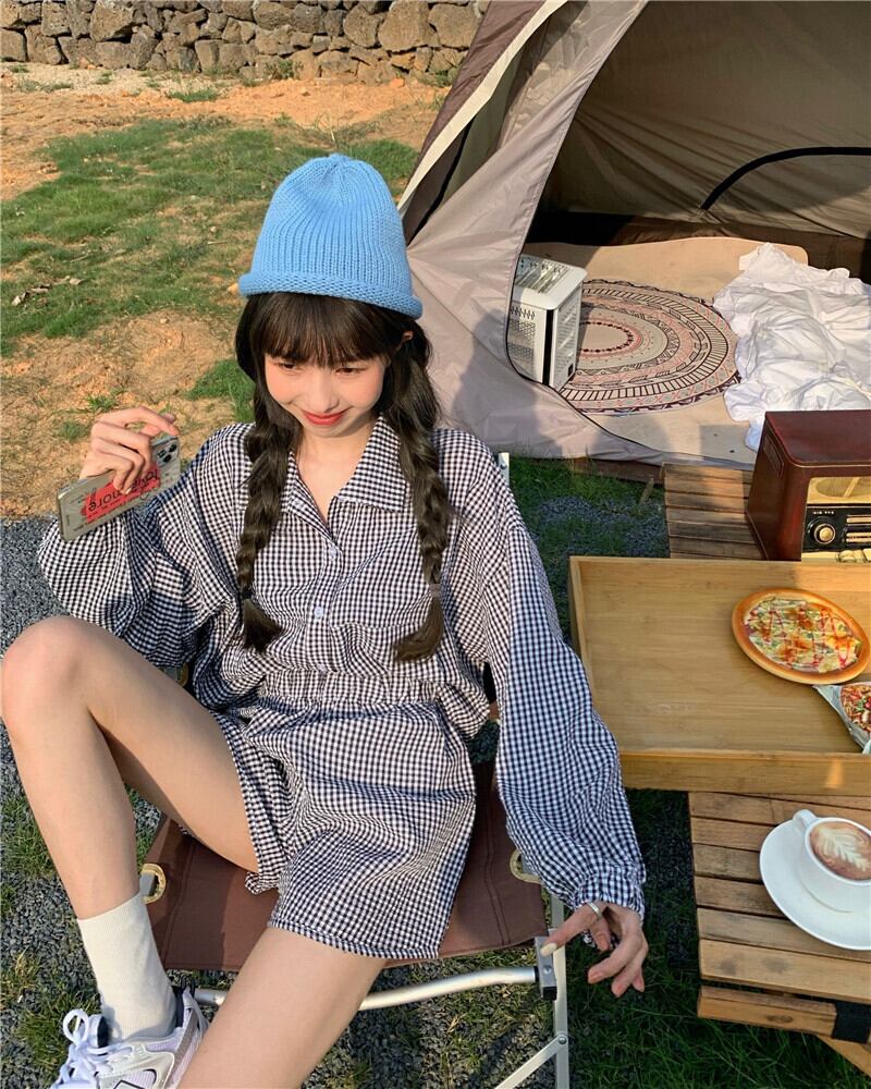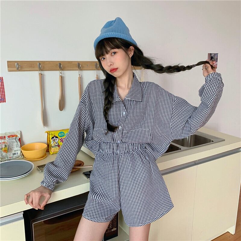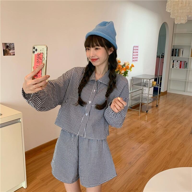 サマーショート格子柄シャツ カジュアルショーツ 夏物 ブルマー モンロー3306905549