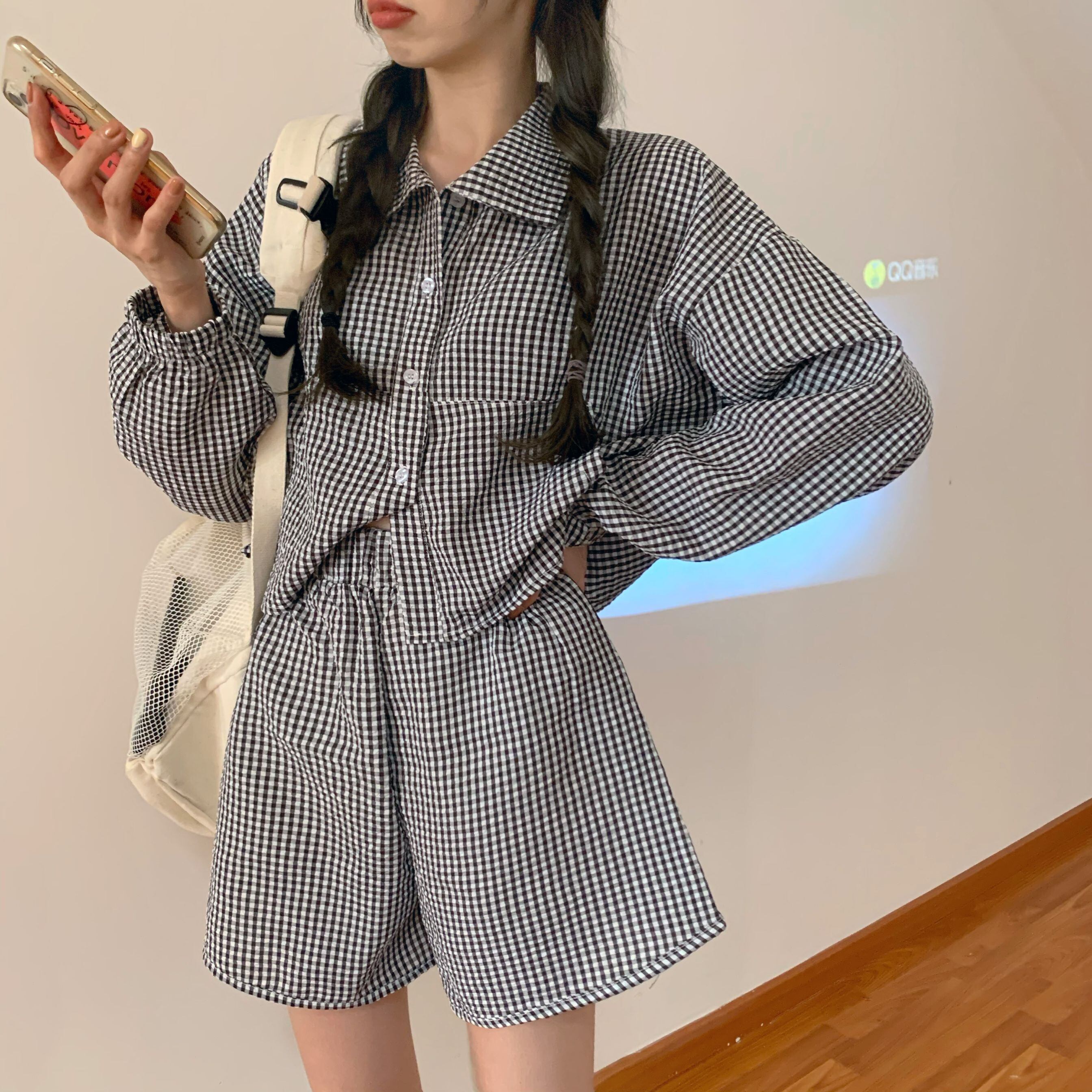 色:格子縞のシャツ,チェック柄ショーツ