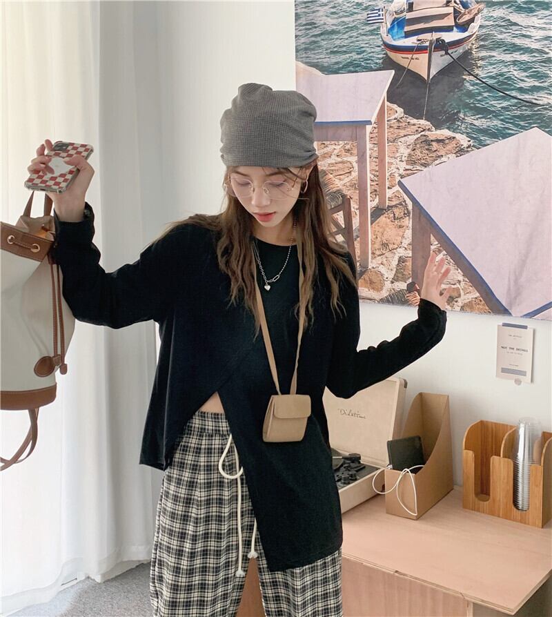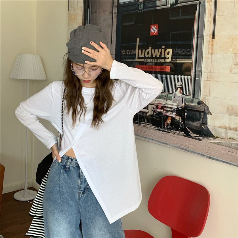 ホワイトルーズスリットTシャツ シャツ オータムトップス ロング 秋物 ピュア モンロー44552977092