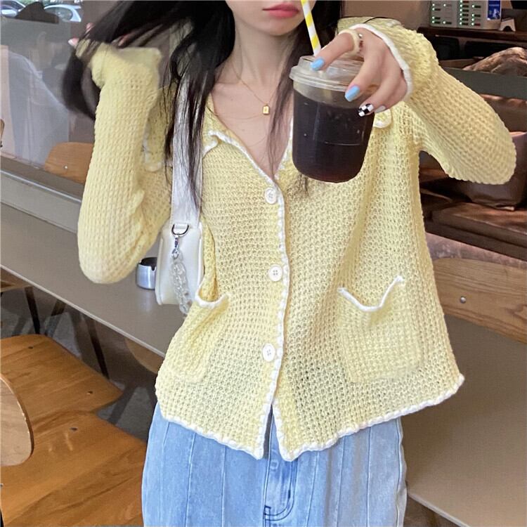 長袖スリーブカラーニットカーディガンオータム薄手セーター ジャケット ショートトップス ロング 大人ガーリー スウィート キュート カジュアル 秋物 モンロー58212623466