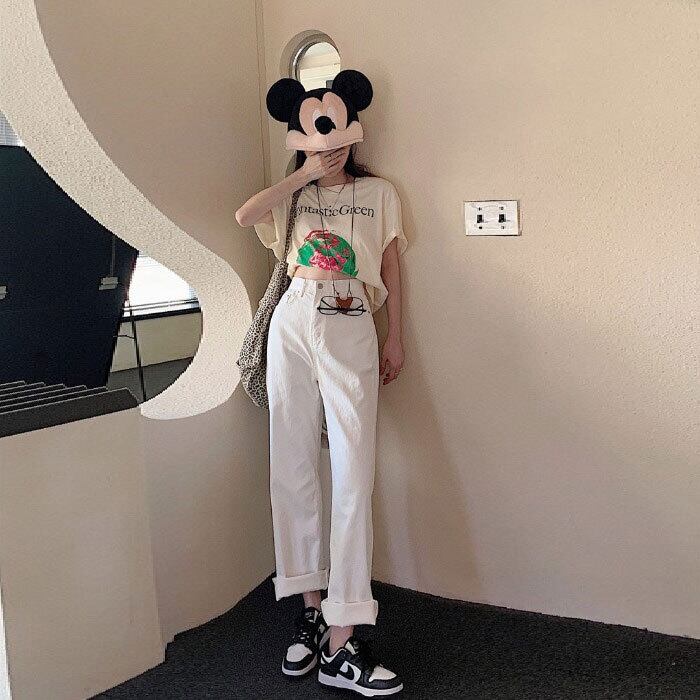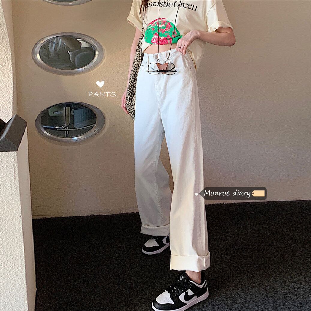 ホワイトパンツ レディースサマー薄手ハイウェストウェストルーズ 夏物 モンロー7295726056