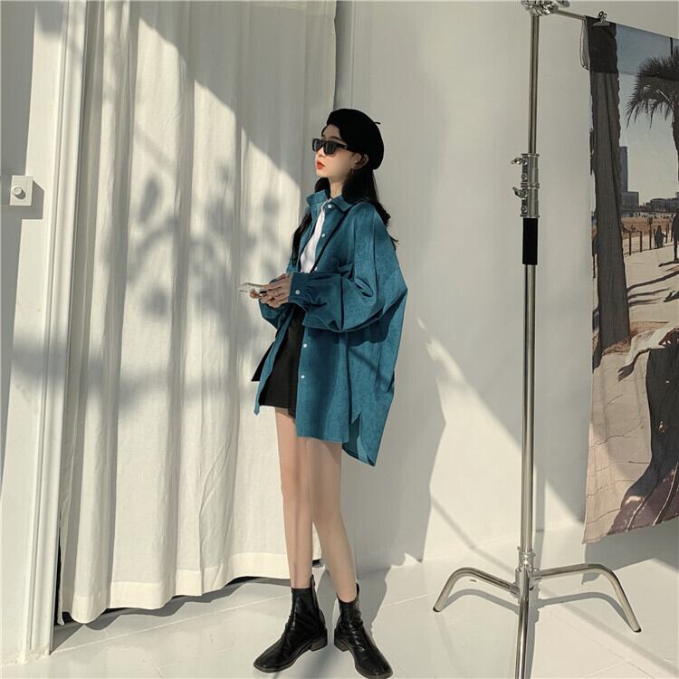 スタイルスタンダードシャツ オータム薄手ルーズジャケット トップス ロング レトロ 秋物 モンロー35018576648