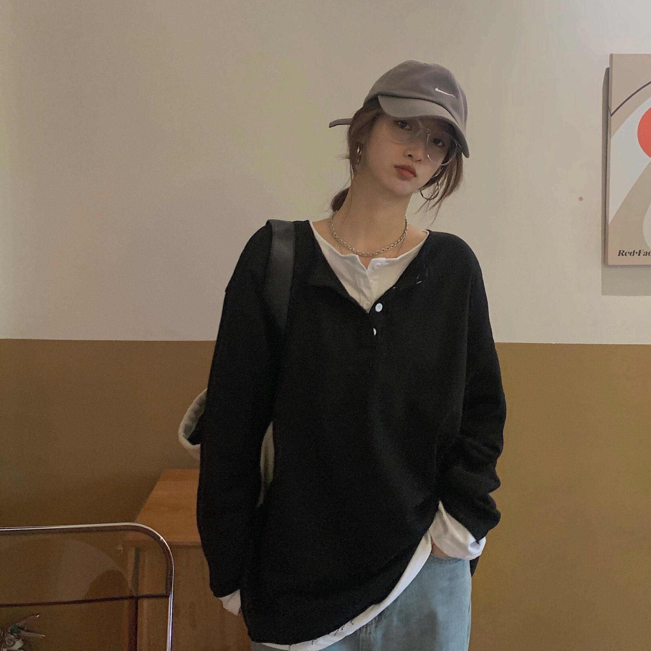 ブラックルーズ薄手セーター ジャケット スプリングオータムトップス ロング 春物 秋物 モンロー7719400848