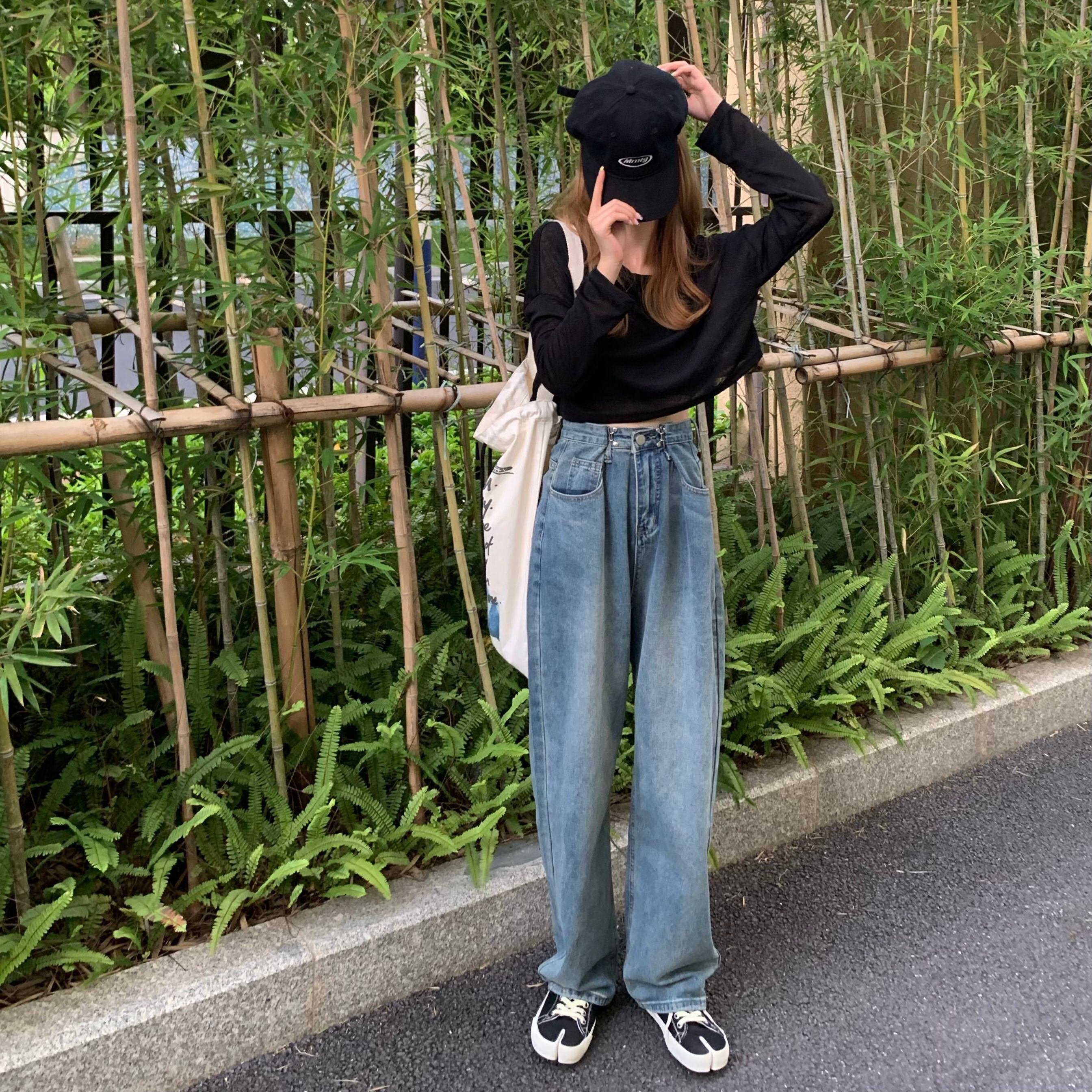 スタンダードハイウェストジーンズ スプリングオータム薄手ルーズパンツ サマー レトロ 春物 夏物 秋物 モンロー76290555909
