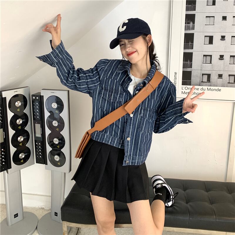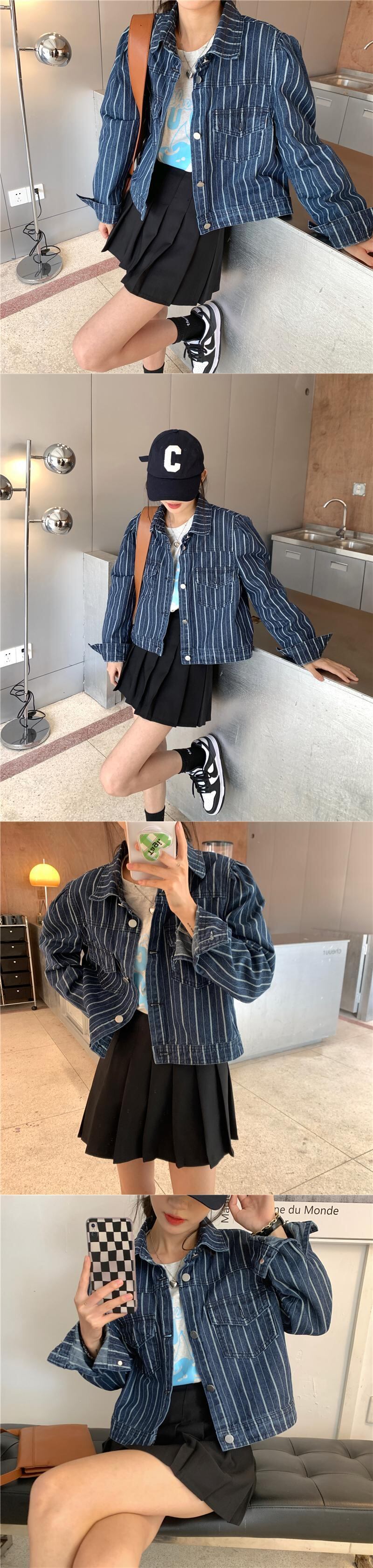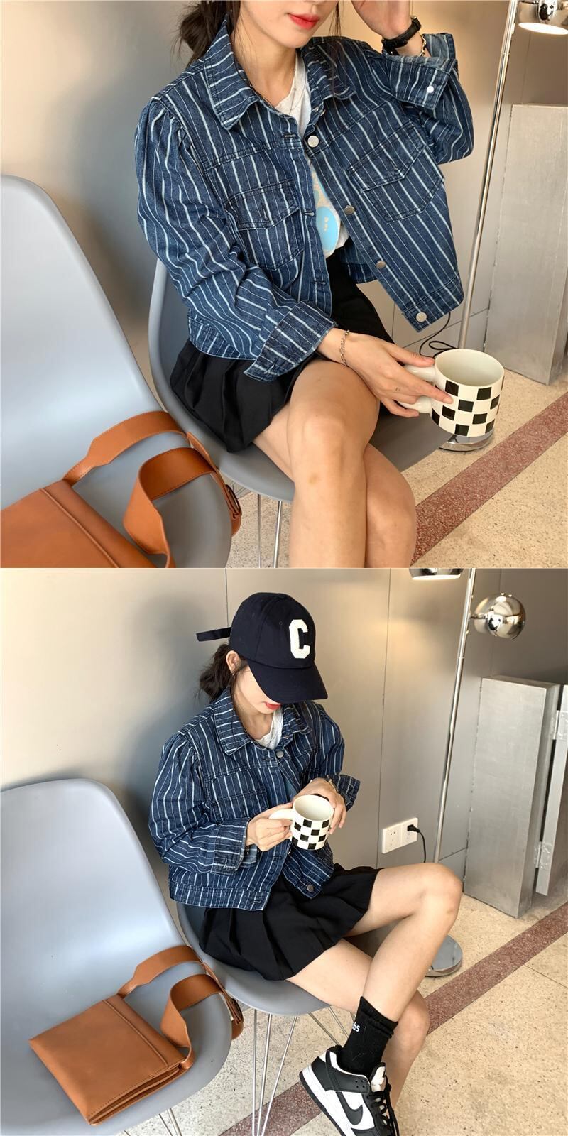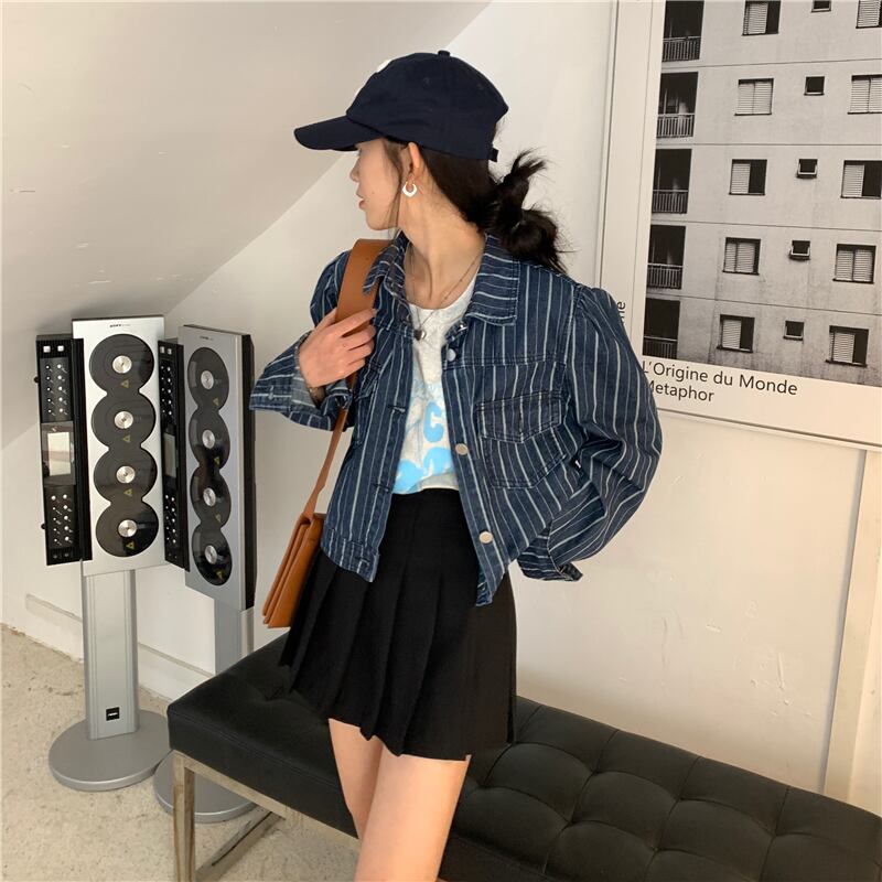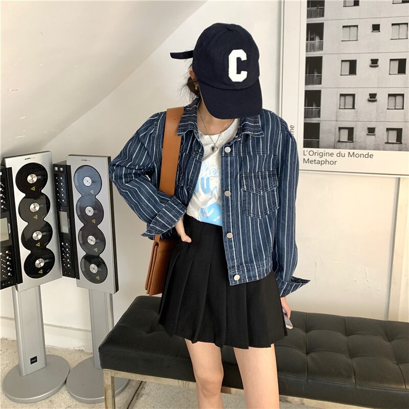 スタイルスタンダードストライプ薄手ジャケット スプリングオータムカジュアルショートトップス ロング レトロ 春物 秋物 モンロー4284928963