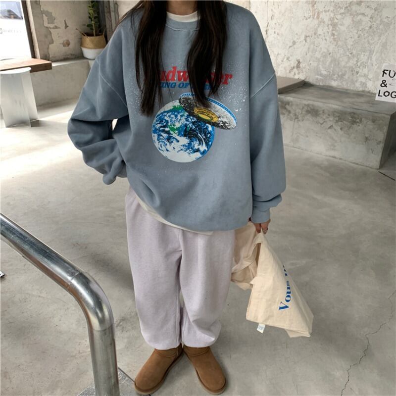 スタイルルーズセーター ジャケット オータムプリント ロング ストリート 秋物 モンロー6384013400