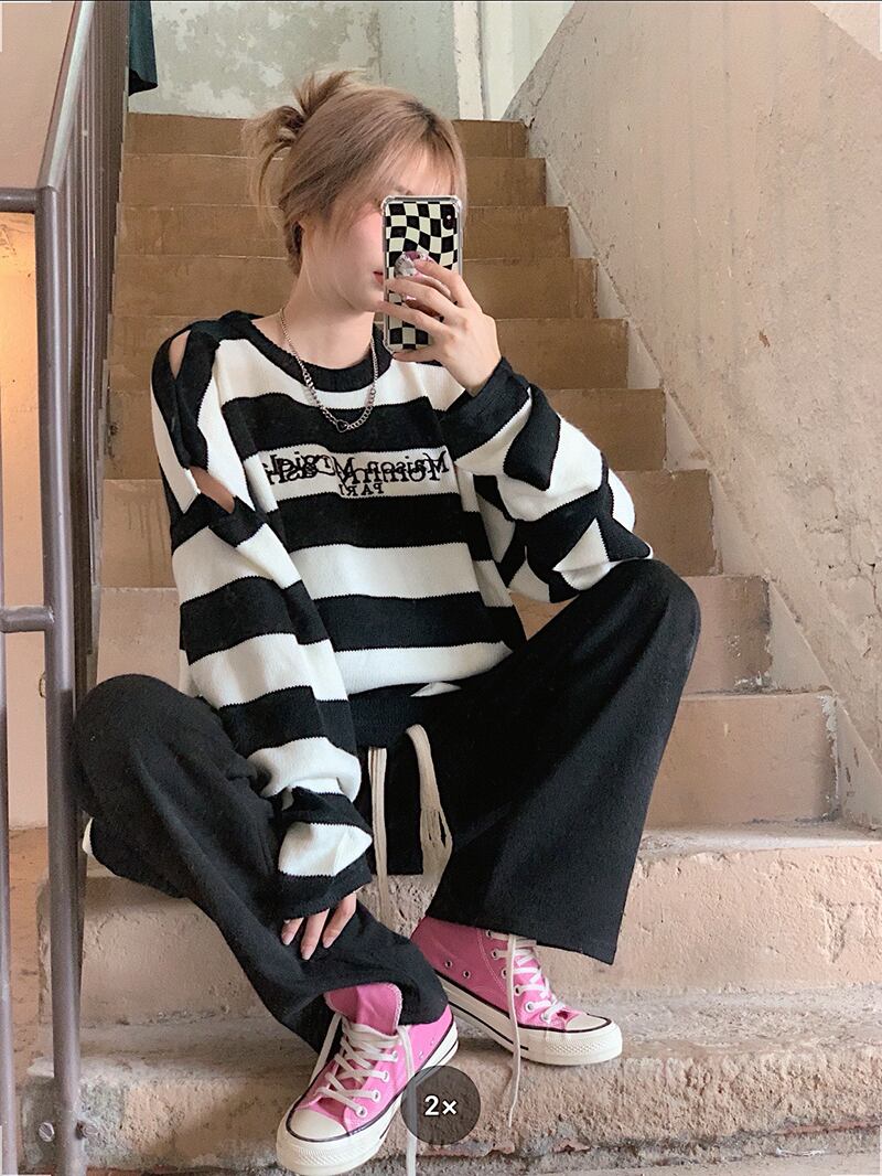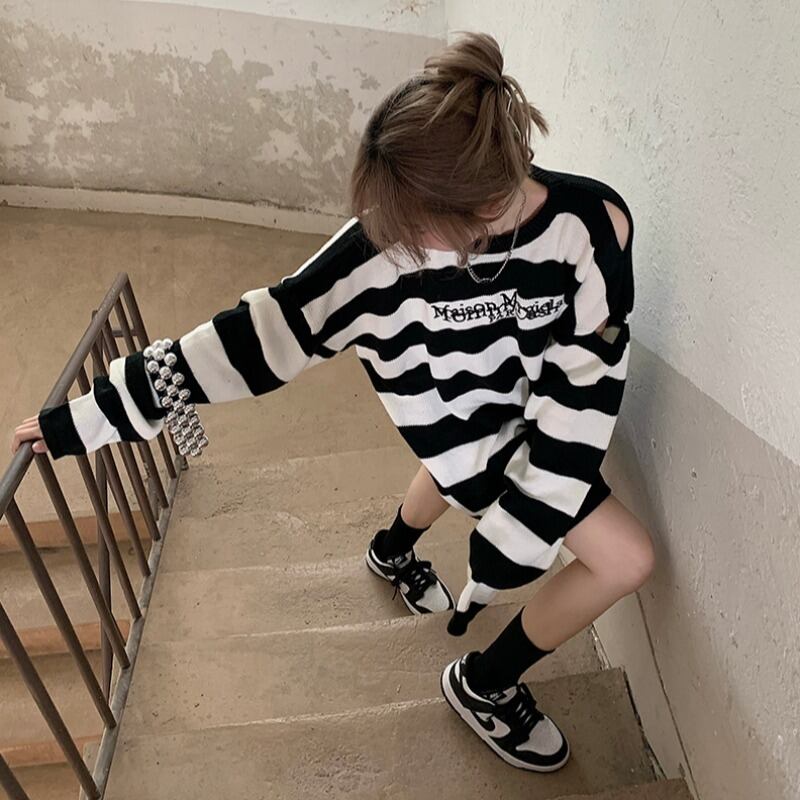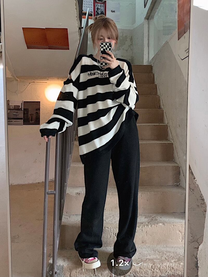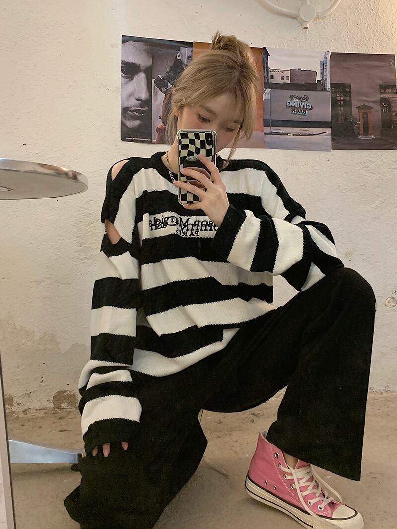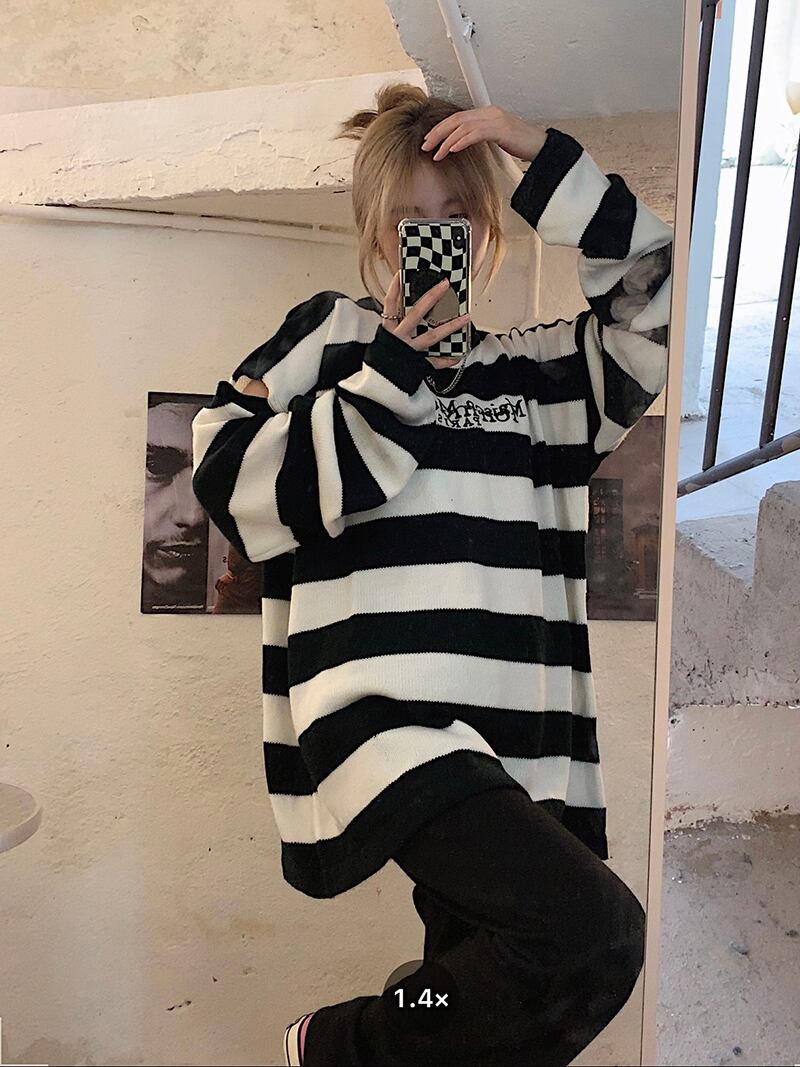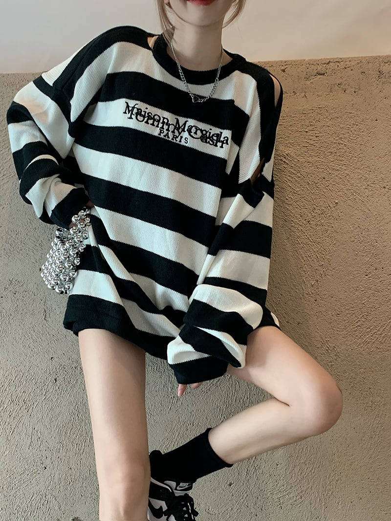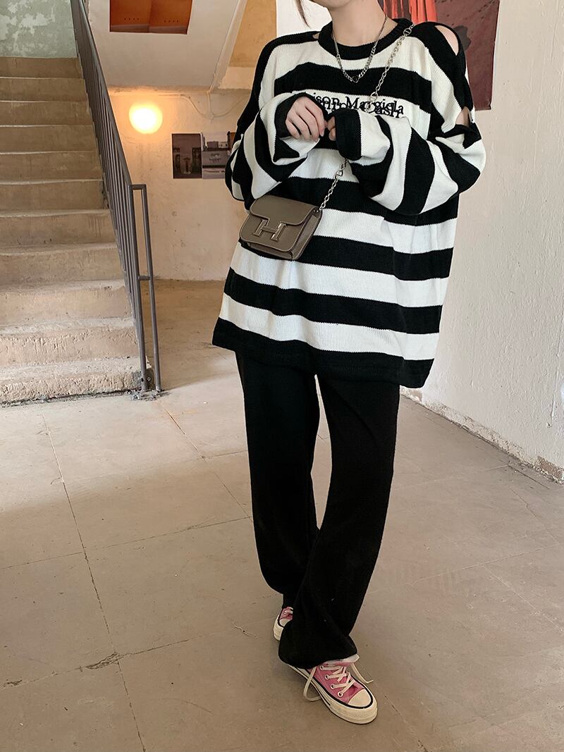 スタイルルーズストライプセーター オータムトップス コート ロング 秋物 モンロー48983610226