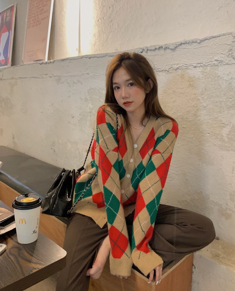 スタイルスタンダードVネックニットカーディガンオータム薄手セーター コート トップス ロング レトロ 秋物 モンロー2134082666