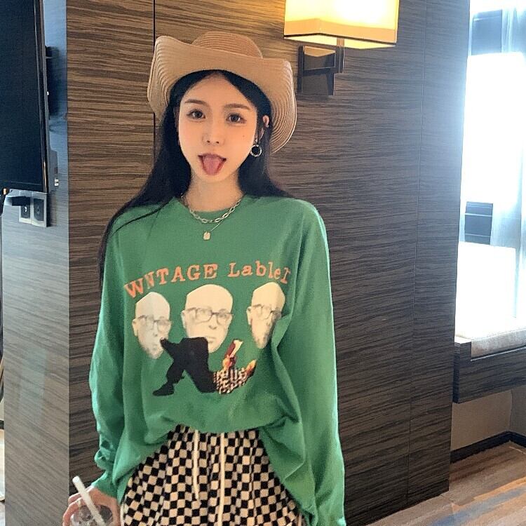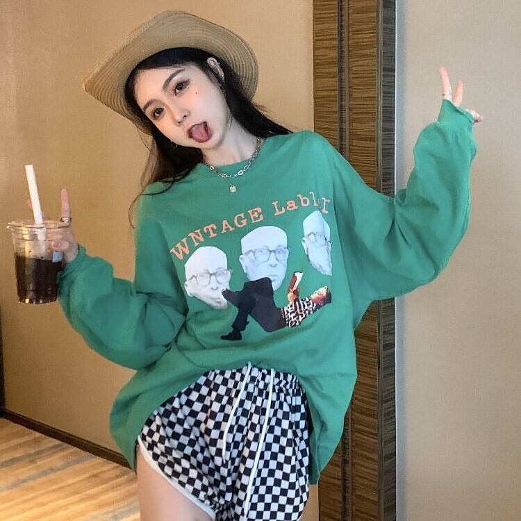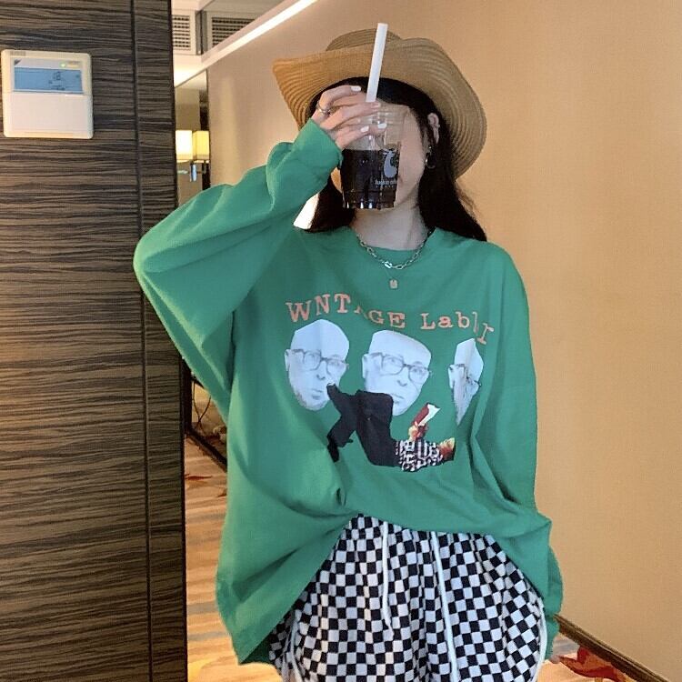 スタイルグリーンルーズ薄手セーター ジャケット スプリングオータムトップス ロング 春物 秋物 モンロー42745864526