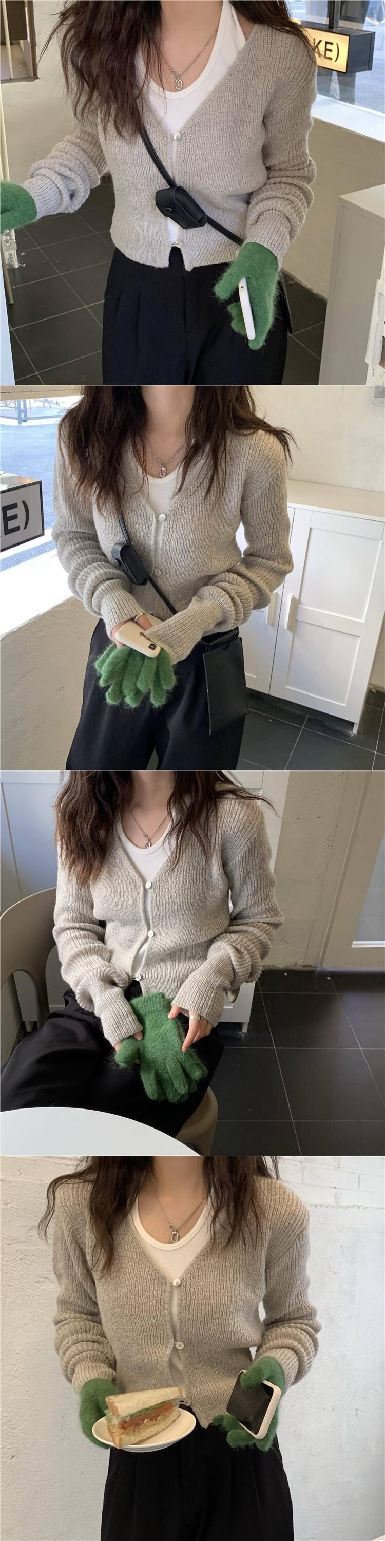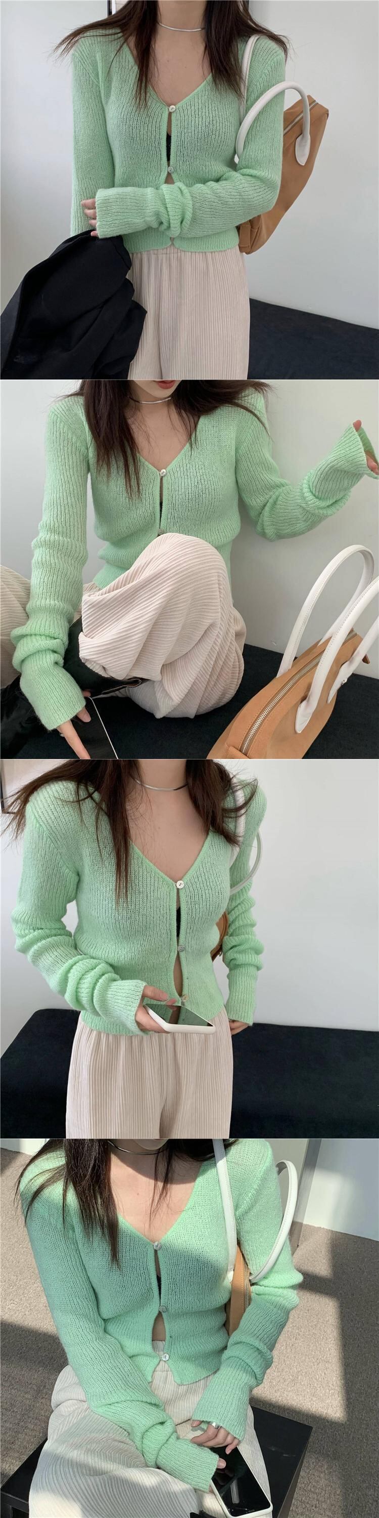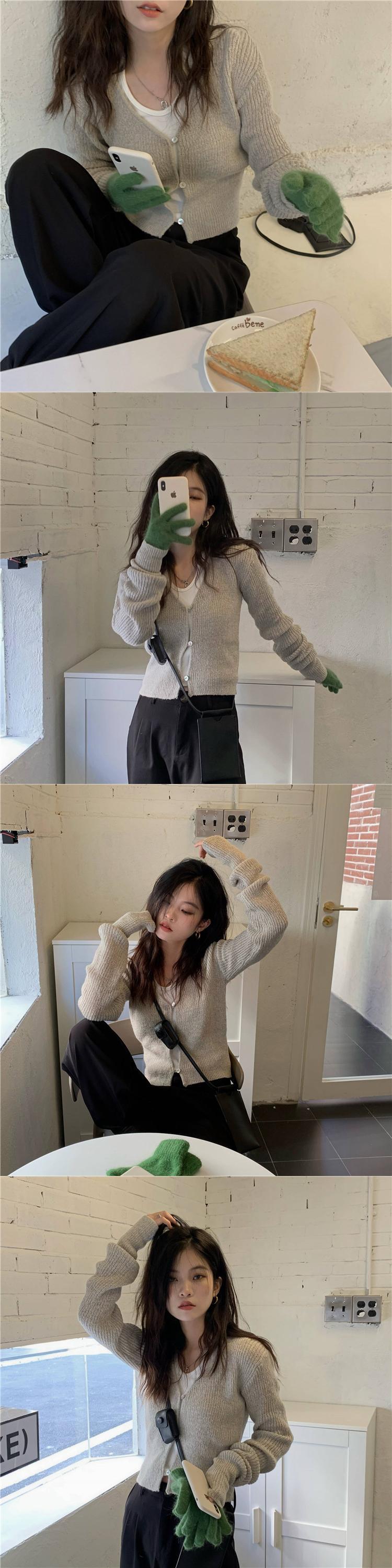 レッドVネックニットカーディガンオータム薄手セーター コート クロップドトップス ロング 大人ガーリー スウィート キュート カジュアル 秋物 モンロー25642543271