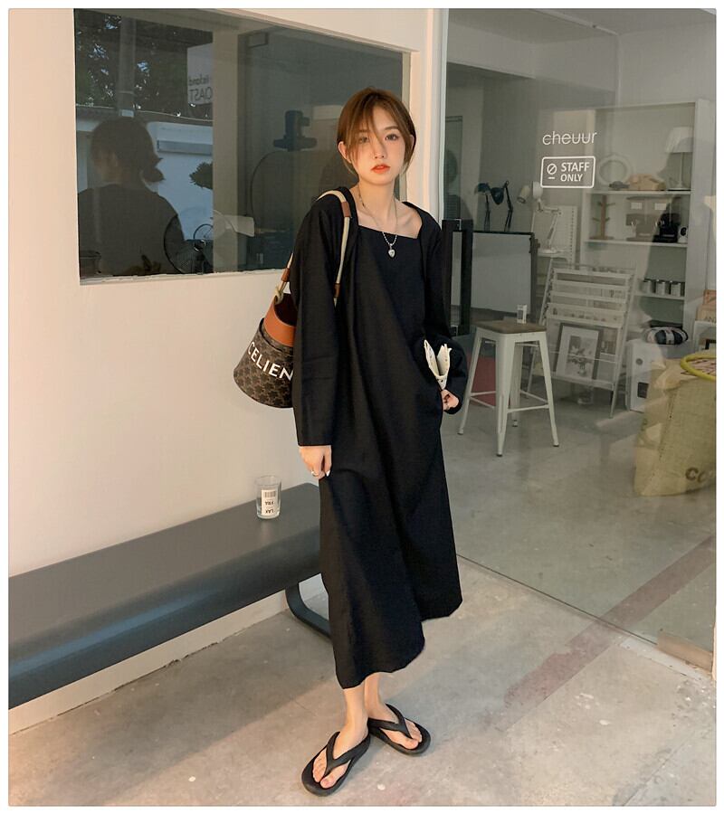 スタイルブラックロングドレス オータムスカート 秋物 スクウェア モンロー3027291215