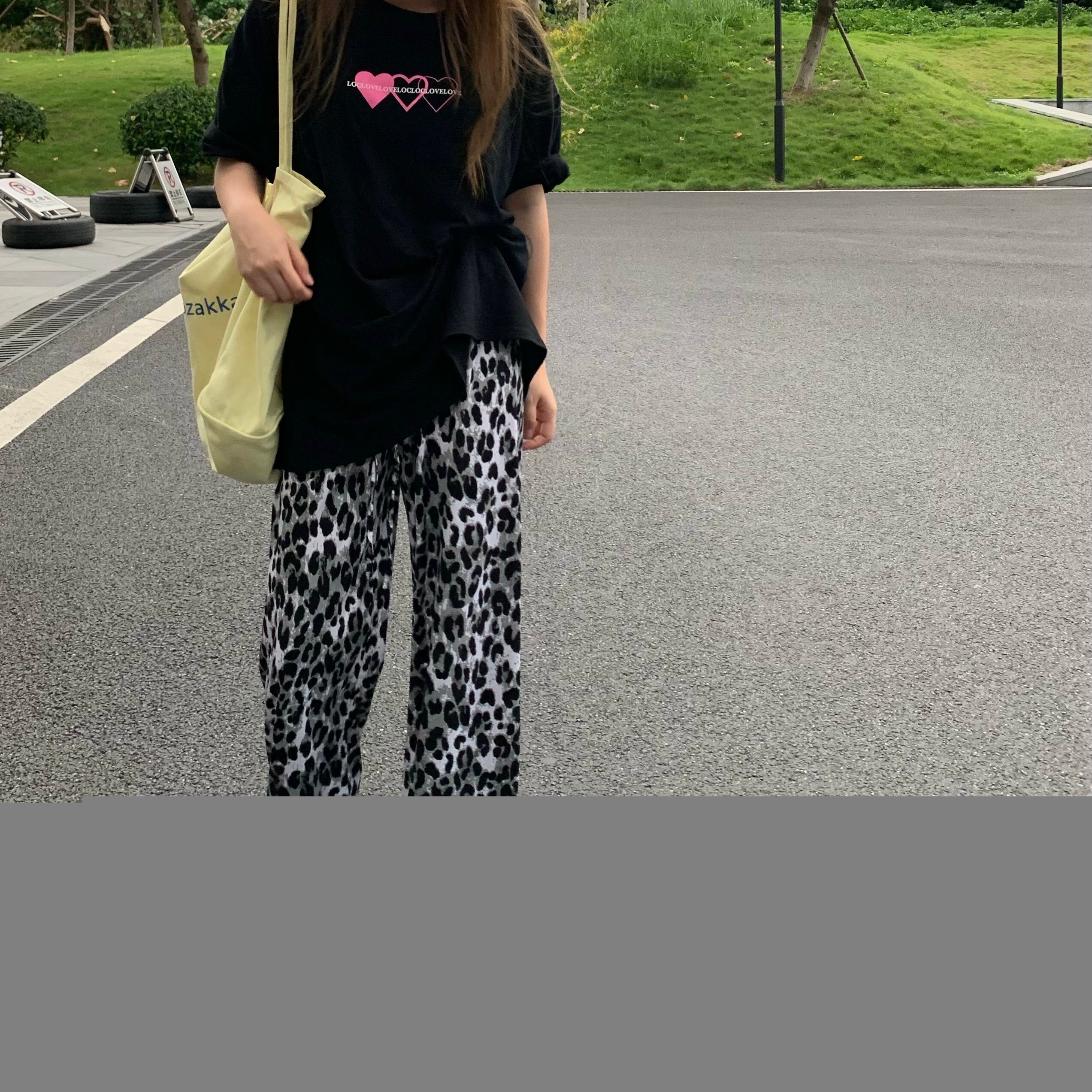 レオパードプリント柄カジュアルパンツ サマー薄手ハイウェストウェストオータムルーズ 夏物 秋物 モンロー25883106014