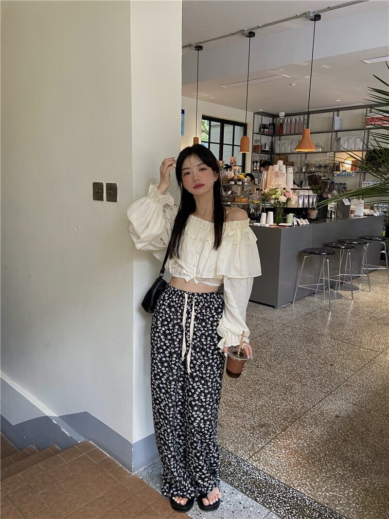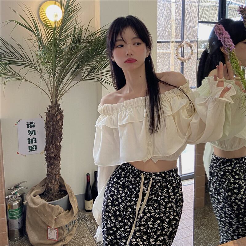 シフォンシャツ オータム薄手ブラウス 秋物 オフショルダー モンロー63335341324
