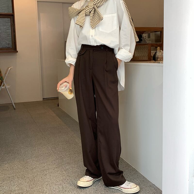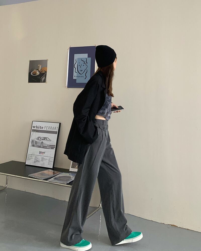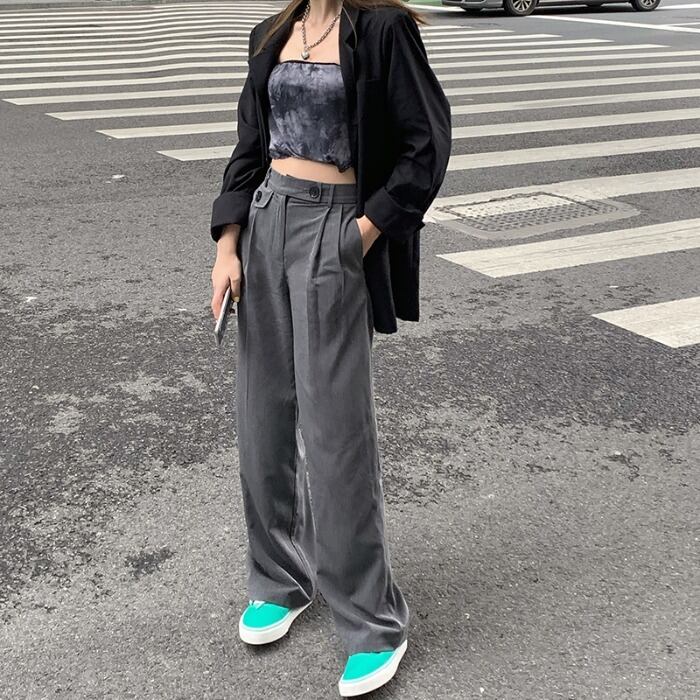 グレーハイウェストウェストカジュアルパンツ レディーススプリングオータム薄手ルーズ 春物 秋物 モンロー73373732130
