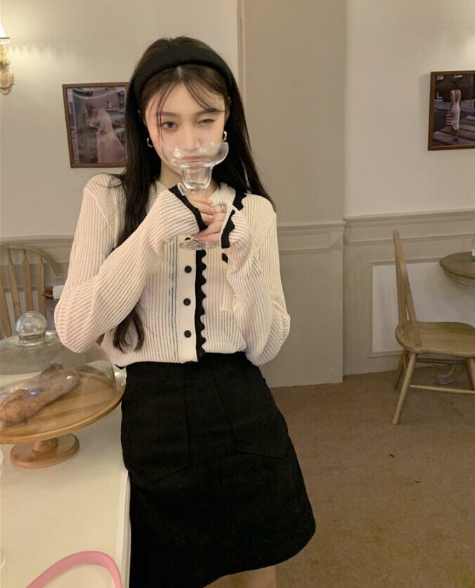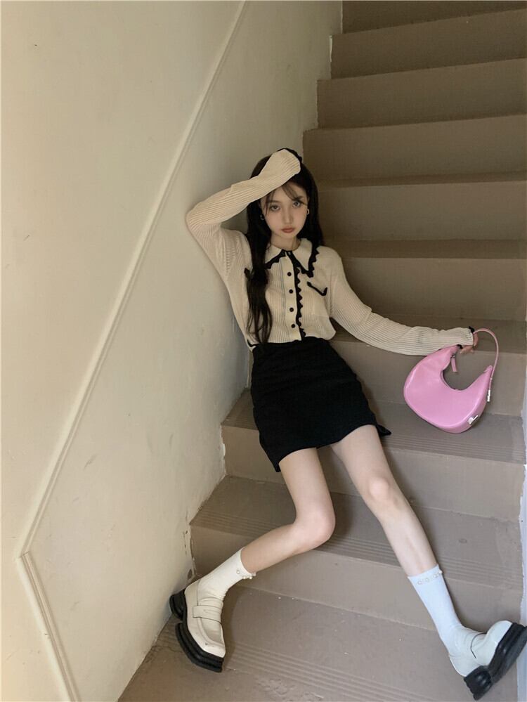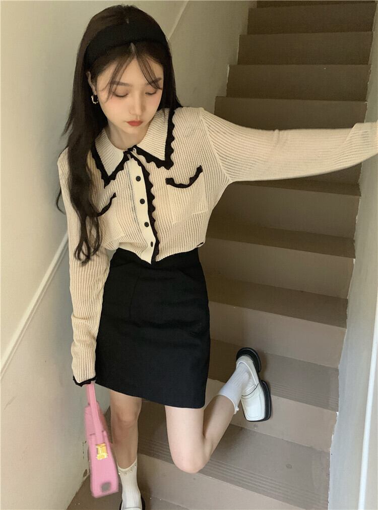 カラーセーター オータム薄手コート クロップドトップス ロング 大人ガーリー スウィート キュート カジュアル 秋物 モンロー9617449421
